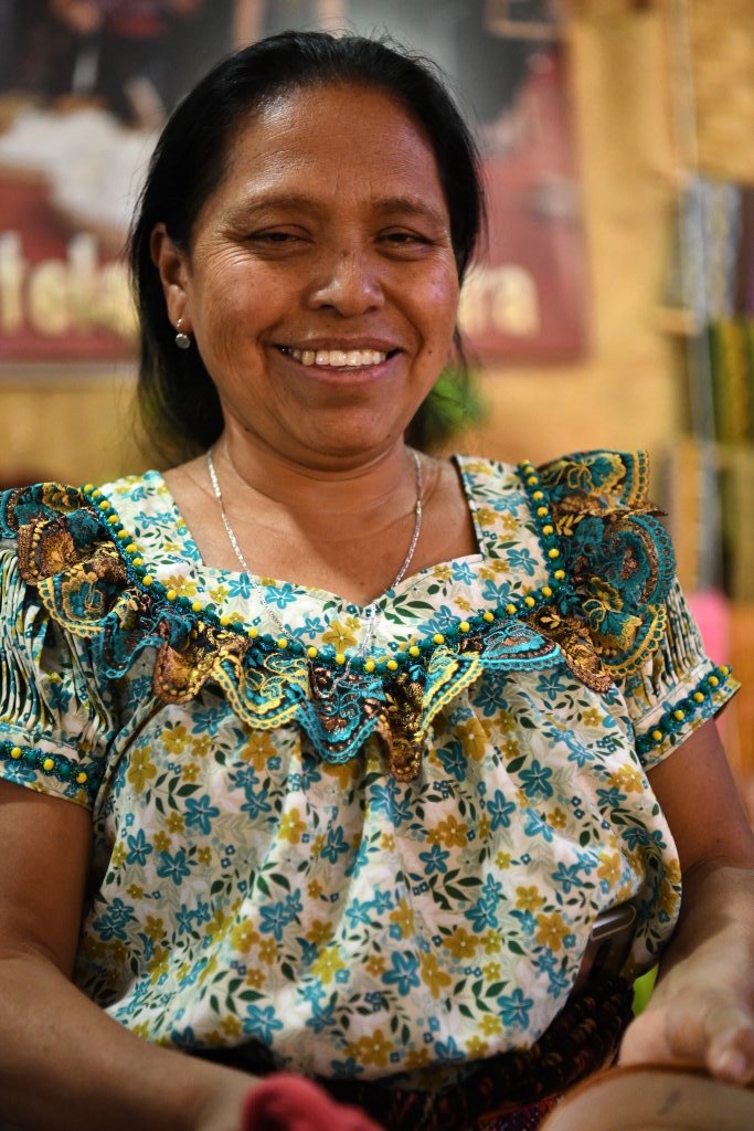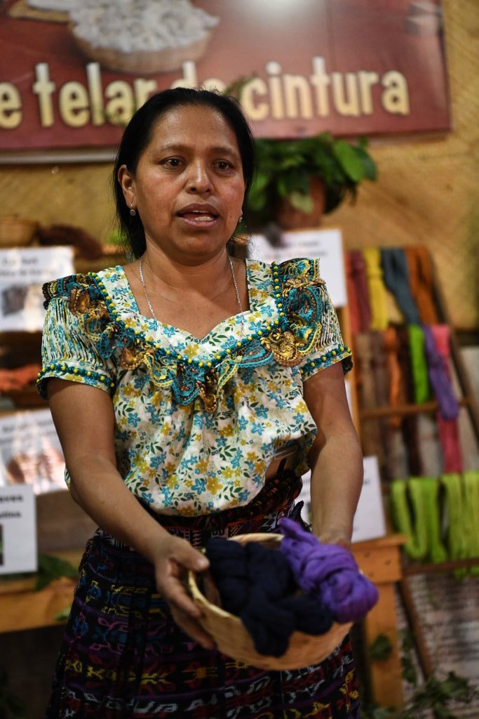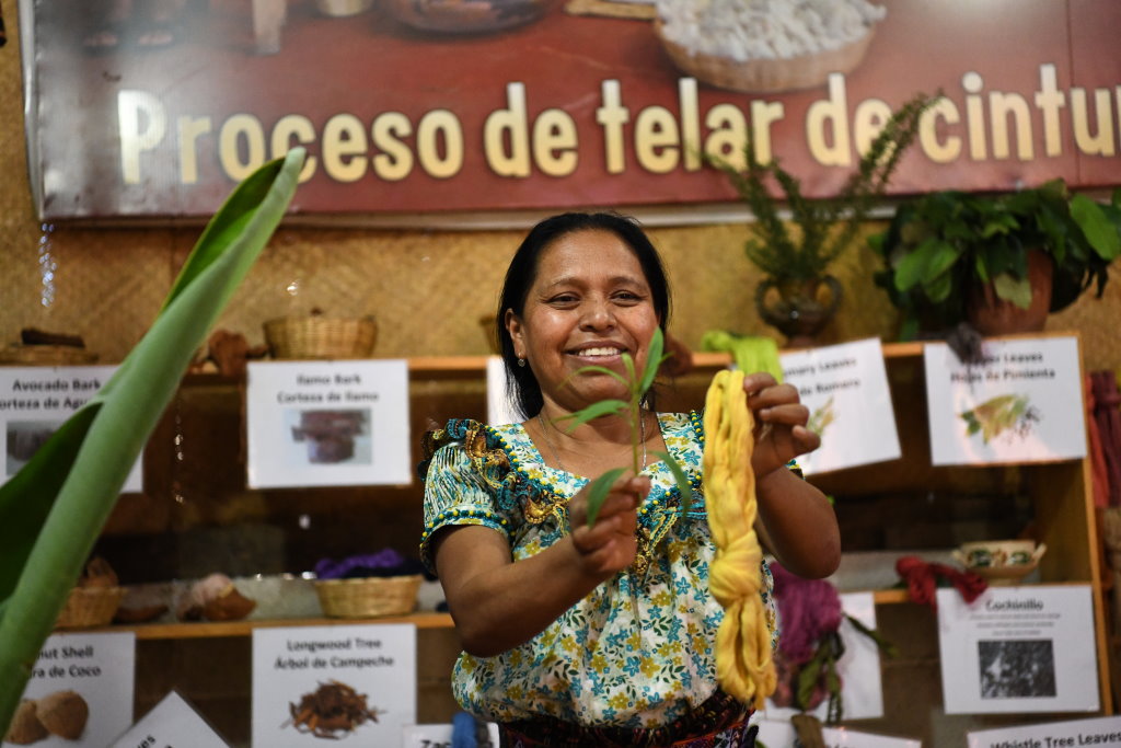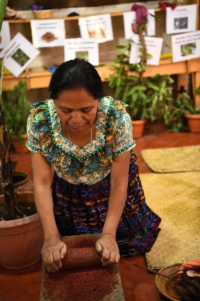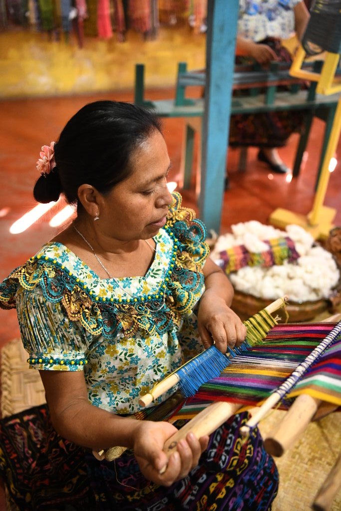 Ein Stück die Straße hinunter besuchen wir eine weitere Kooperative. Die Ixoq Ajkeem wurde vor 25 Jahren gegründet und besteht heute aus 40 Frauen. Zwei von ihnen zeigen uns ausführlich die Besonderheiten ihrer Produktionen. Alles ist nicht nur Handarbeit, sondern auch reine Naturproduktion. Die Baumwolle wird von Hand gesponnen, mit Naturfarben aus verschiedenen Pflanzen, Kräutern, Baumrinden und sogar Insekten eingefärbt und dann mit einem einfachen Rückenband- oder Hüftwebstuhl zu kurzen Stoffbahnen verwoben.