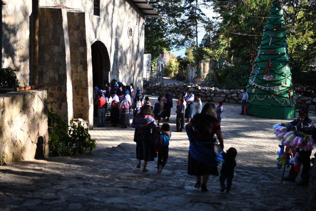 So wird auch der nachmittägliche Sonntags-Gottesdienst ausschließlich von den indigenen Dorfbewohnern besucht, die einheitlich in Tracht, die Frauen fast alle mit Kopftuch, die Kirche bis zum letzten Platz und darüber hinaus füllen. Mangels einer Orgel werden die begeistert von Chor und Gemeinde gesungenen Kirchenlieder von den mitreißenden Klängen einer Gitarre und eines Akkordeons begleitet. Allein das wieder ein unvergessliches Erlebnis.