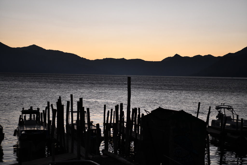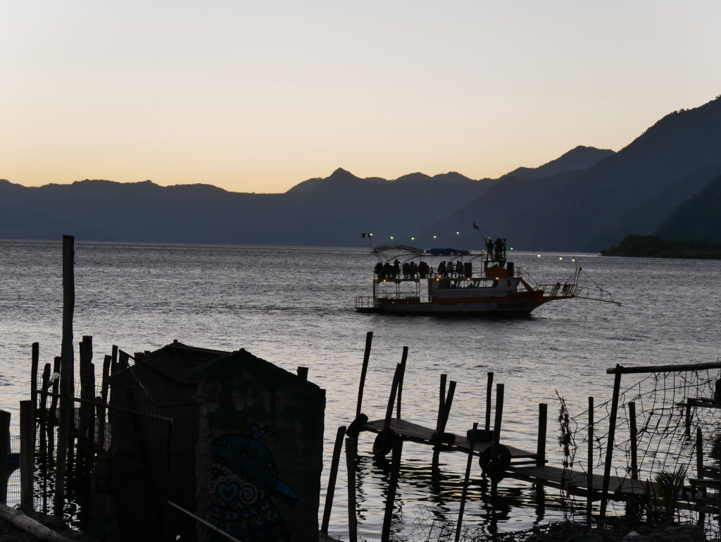 Mit einem der letzten Boote fahren wir zurück nach Panajachel. Dort erleben wir am Kai einen wunderschönen Sonnenuntergang und beschließen spontan, unseren Aufenthalt am Atitlan-See um einen weiteren Tag zu verlängern.