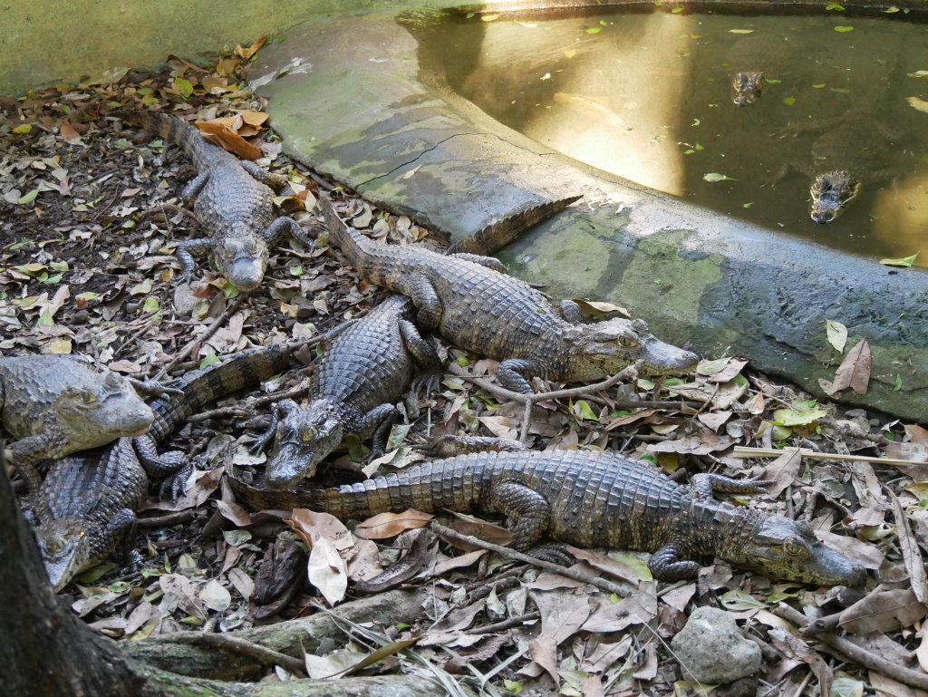 Der bedrohte Lebensraum macht auch den hier heimischen fischfressenden Kaimanen und den für Menschen nicht ungefährlichen Salzwasser-Alligatoren zu schaffen. Beide Arten leben getrennt voneinander friedlich mit verschiedenen Arten der hier heimischen Wasserschildkröten in den Bassins.