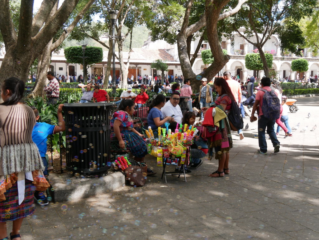 Noch einmal strawanzen wir beide durch die Altstadt von Antigua. Genießen die Sonne bei einer angenehmen Brise. Lächeln über die penetranten Versuche der Verkäuferinnen und Straßenhändler, uns fröhlich-bunte Schals und Tücher oder eine Flöte aufzuschwatzen. Und natürlich Kaffee und Schokolade. Nirgendwo in Guatemala haben wir besseren getrunken. Kein Wunder. In dieser Gegend liegen einige Anbaugebiete und in der Stadt rösten zahlreiche kleine Röstereien mit eigenem Café.