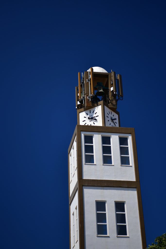 Wo sonst ein Leuchtfeuer optisch den Weg weist, lockt eine mächtige Glocke die Gemeinde akustisch in den modernen Kirchenbau.