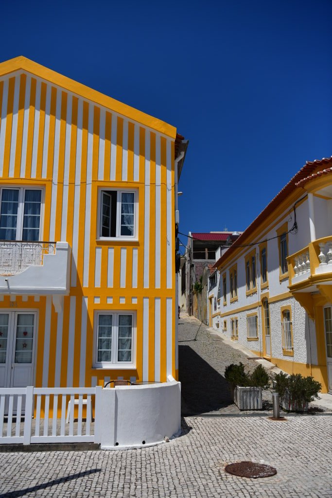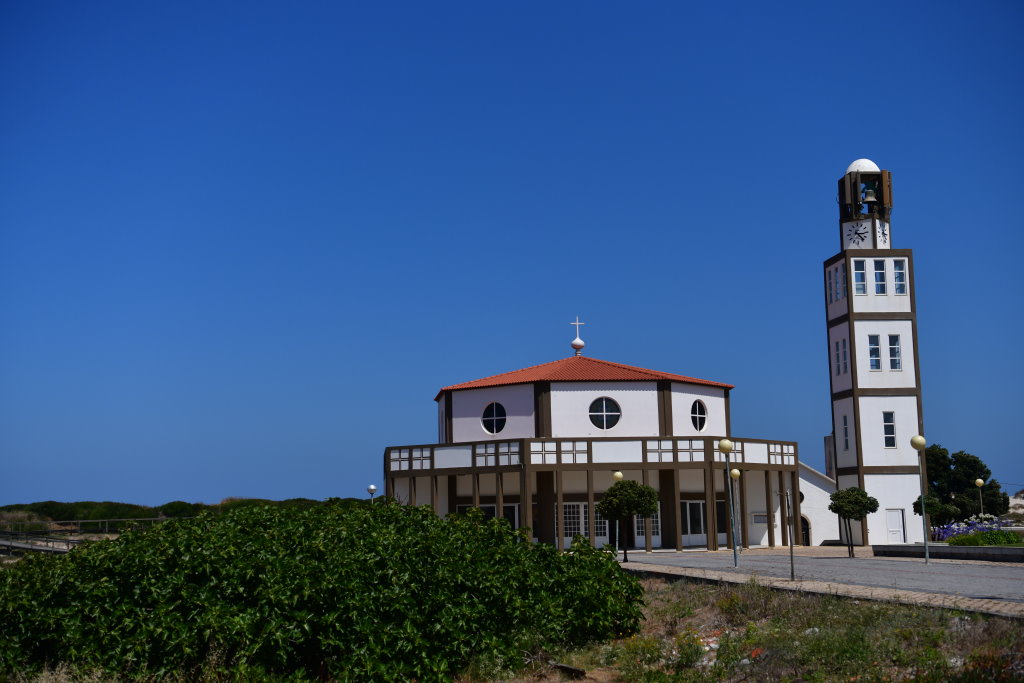 Zwischen den Dünen weckt die Igreja Matriz da Costa Nova unsere Neugier. Was zunächst wie ein Leuchtturm erscheint, entpuppt sich als moderner Glockenturm.