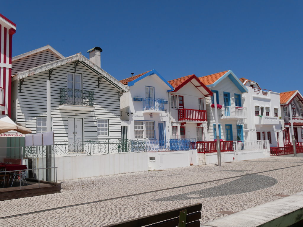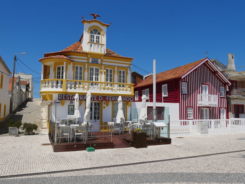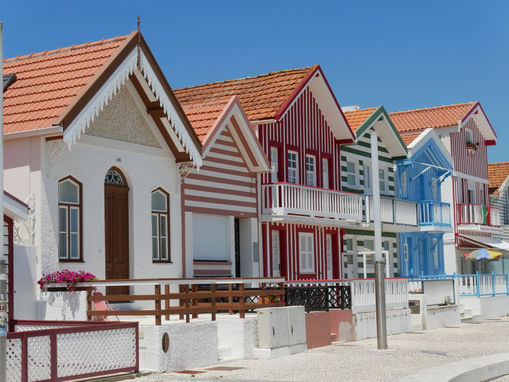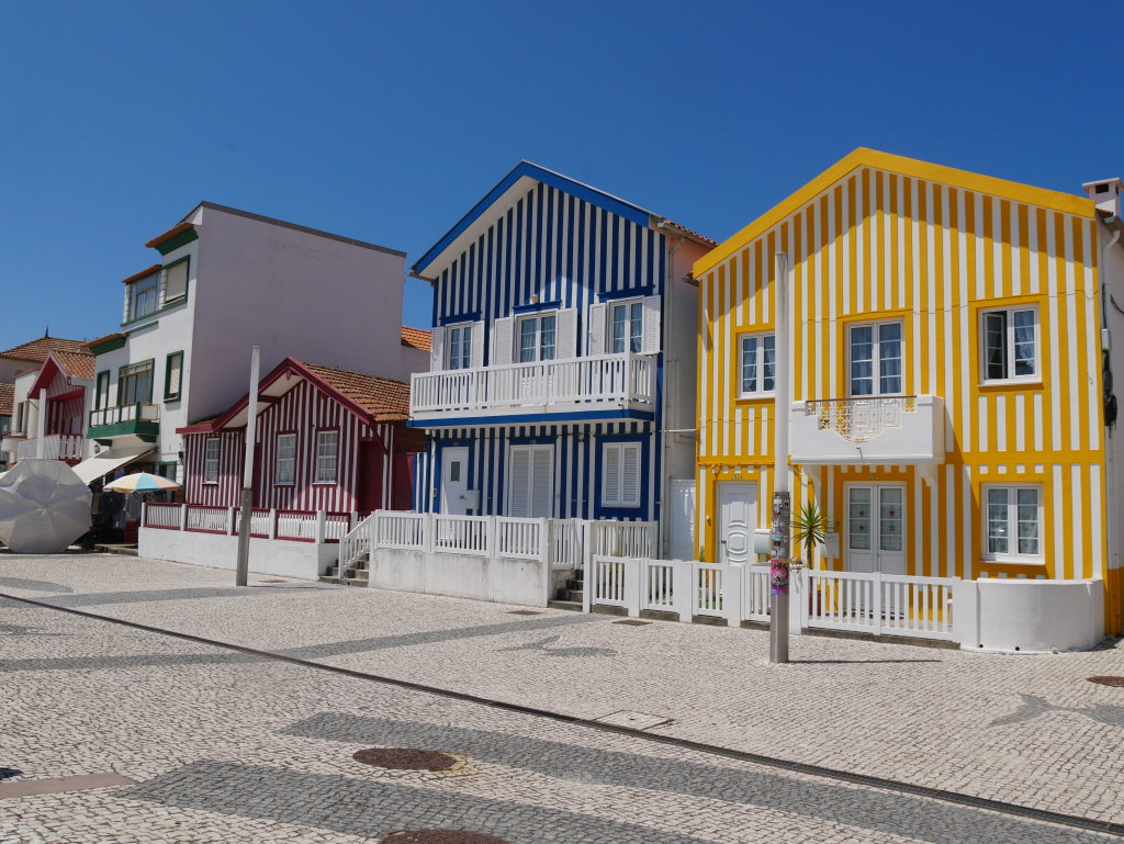 Der Strand ist beinahe menschenleer. Selbst die bunt gestreiften Fischerhütten auf der anderen Seite der Landzunge haben schon mehr Touristen angelockt. Die pittoresken, farbig beplankten Häuser entpuppen sich als bemalte Stuckfassaden.