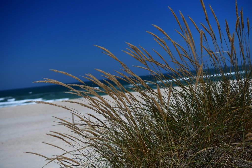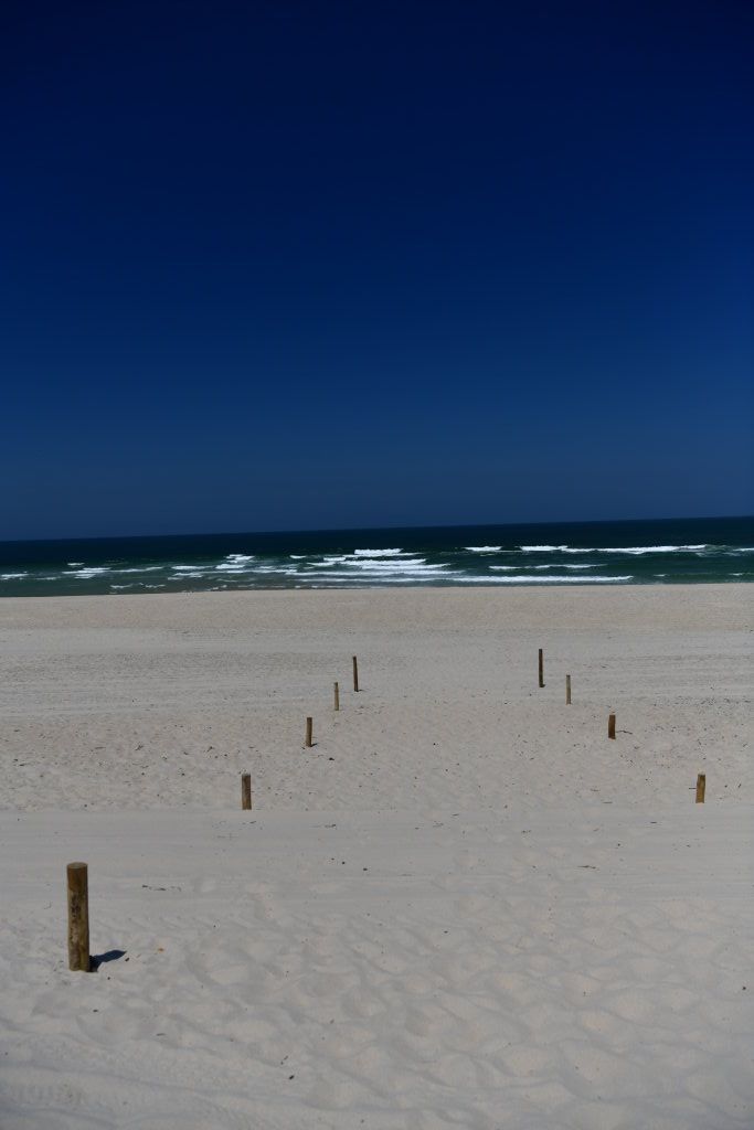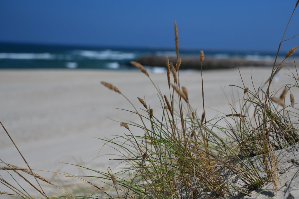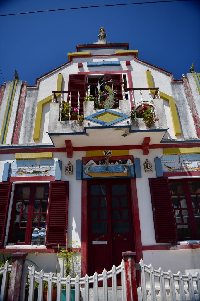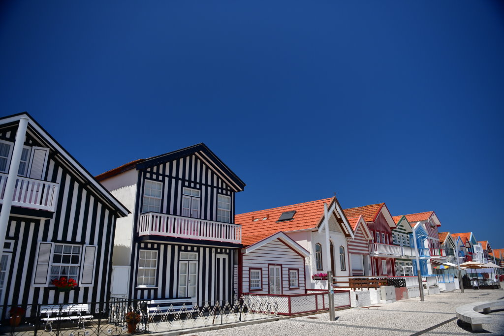 Der Strand ist beinahe menschenleer. Selbst die bunt gestreiften Fischerhütten auf der anderen Seite der Landzunge haben schon mehr Touristen angelockt. Die pittoresken, farbig beplankten Häuser entpuppen sich als bemalte Stuckfassaden.