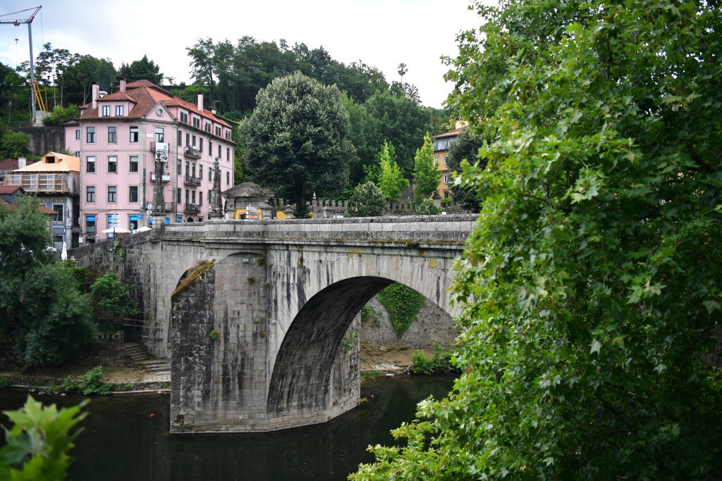 Wir beginnen den Tag mit einem kleinen Ausflug auf der Rota do Románico (N101) und fahren vom Douro durch das bergige Hinterland in das rund 40 Kilometer von unserem Quartier entfernte Städtchen Amarante. Hier hat ein Dominkanermönch, der heilige São Gonçalo (1187–1259) seine Spuren hinterlassen. Der Ort verdankt ihm nicht nur eine massive Steinbrücke über den Tâmega, sondern auch ein nach ihm benanntes Gebäck.
