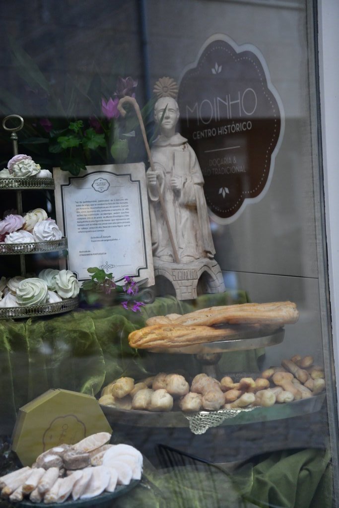 Die im Original wie ein Phallus geformten „Bolos de São Gonçalo“ hat man in der „Confeitaria da Ponte“ optisch leicht entschärft (im Bild oben rechts) und die „Murmeln“ weggelassen. Weitere süße Spezialitäten sind die dottergelben „Papos de anjo“ und die wie Schiffchen geformten „Brisas do Tâmega“ mit ihrem weißen Zuckergussdeckel.