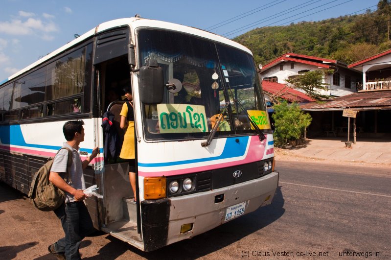 Mit dem regulären Linienbus ging die Fahrt von Vientiane über Tha Kaek nach Savannakhet, wo wir gegen 19.00 Uhr ankamen und unsre bislang preiswertestes Nachtquartier für rund 7 Euro belegten…