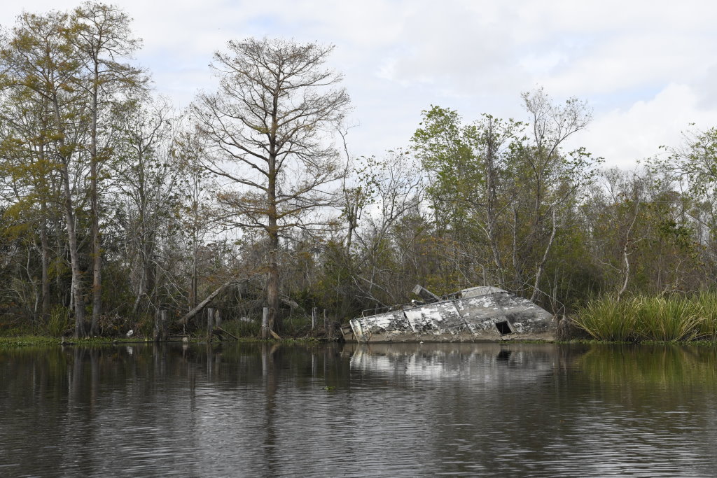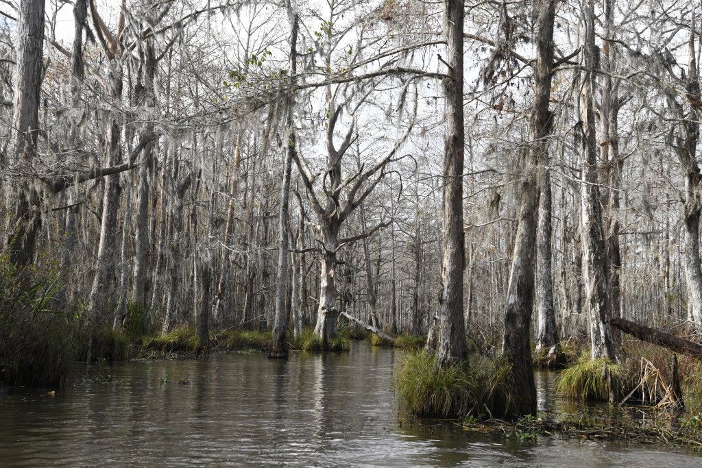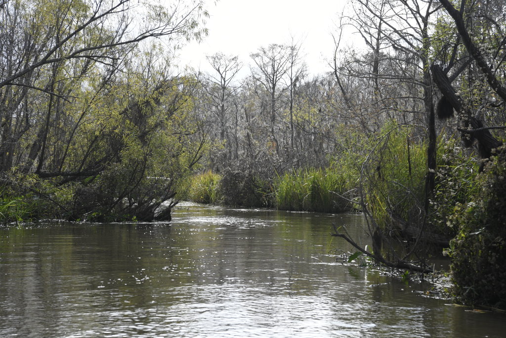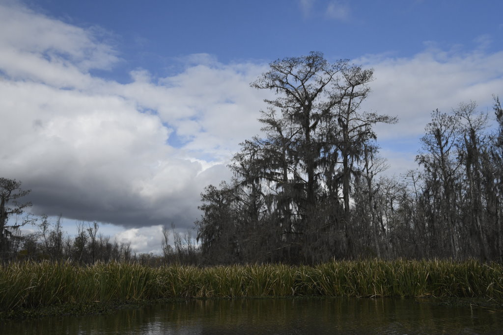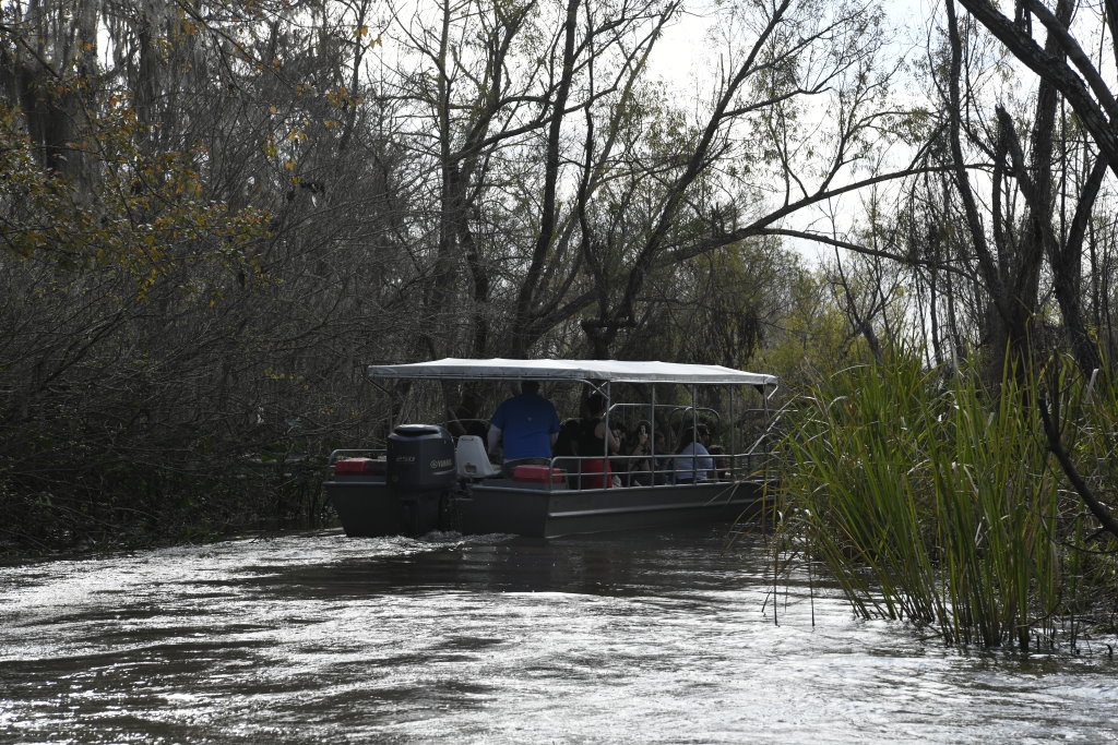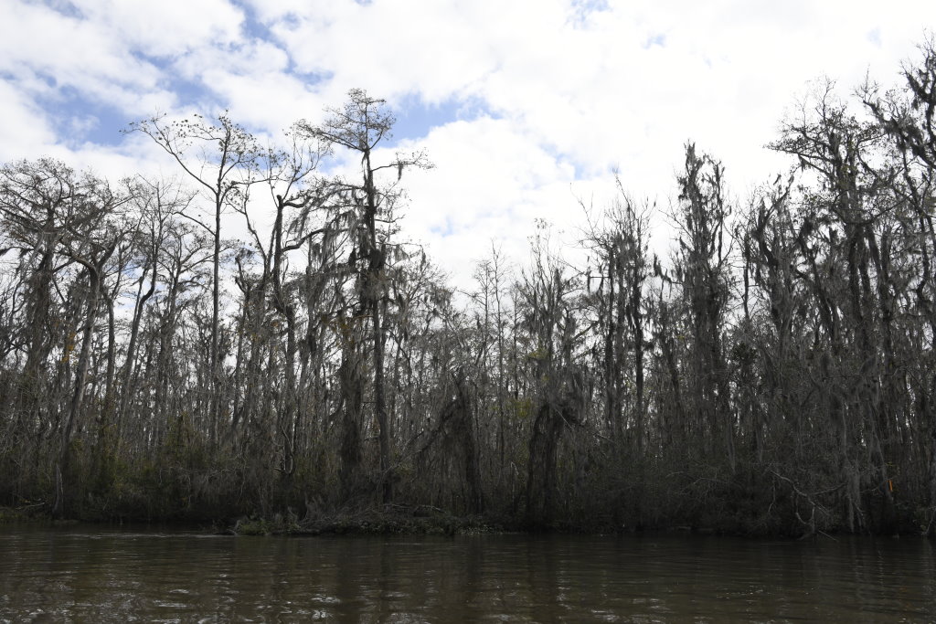 Man würde sich nicht wundern, wenn plötzlich Wes Cravens „Ding aus dem Sumpf“ plötzlich aus dem schlammigen Wasser zwischen den Bäumen auftaucht. Doch nichts passiert. Das einzige Abenteuer verursacht mein schwarzer Hut, der plötzlich von einer Böe erfasst wird und ins Wasser segelt. Bevor er sich mit Wasser vollsaugen kann und untergeht, gelingt es Gary so nah an ihn heran zu manövrieren, dass mein Sitznachbar ihn aus den Fluten ziehen kann.