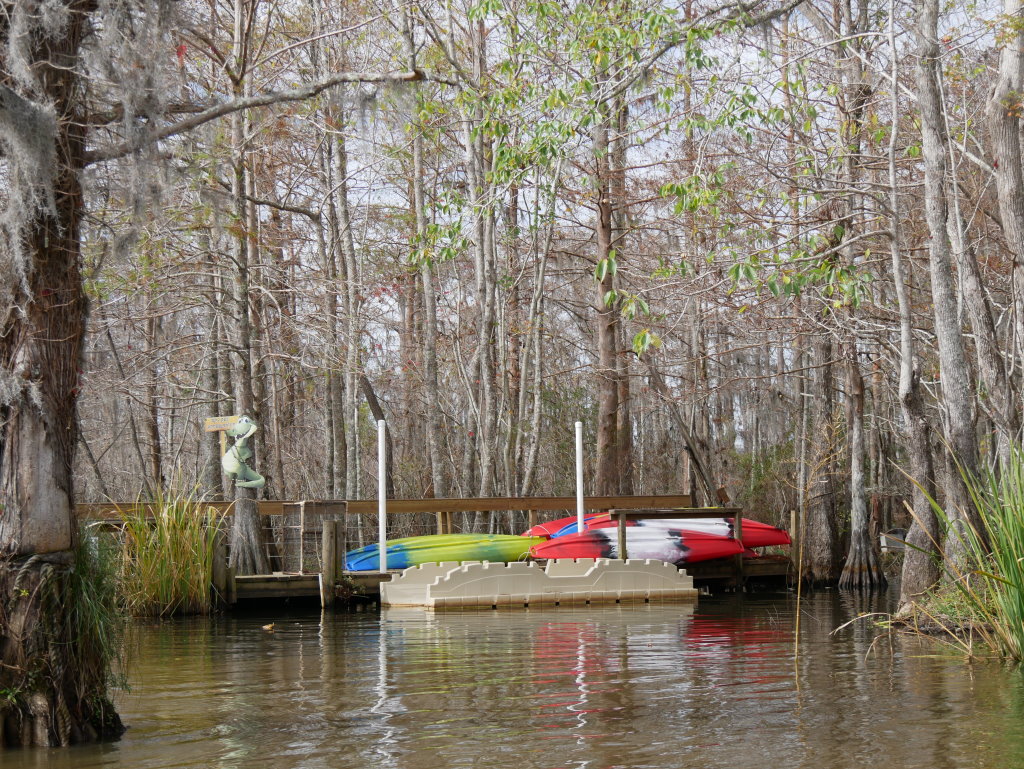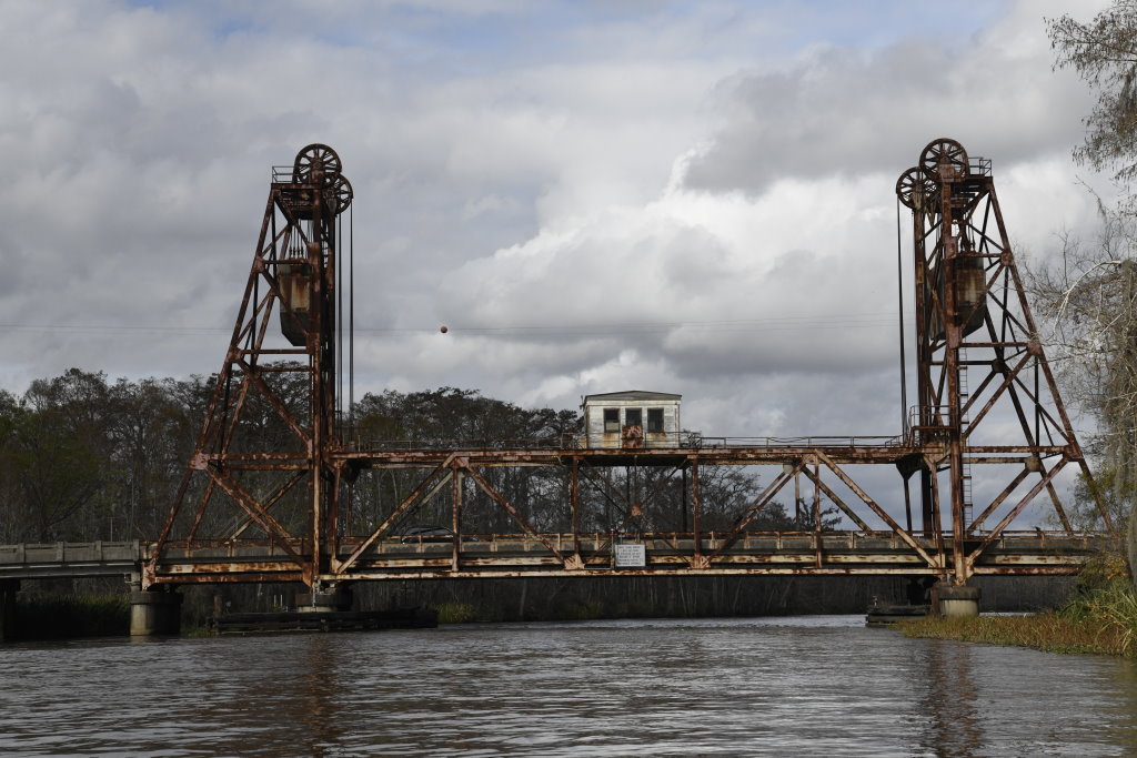 Den geduldigen Angler haben wir an einem der Kanäle hinter der historischen Fort Macomb Schwingbrücke getroffen. Eine weitere alte Brücke weckt einige Meilen später erneut unsere Neugier. Aus dem spontanen Stopp wird diesmal eine längere Unterbrechung. Direkt neben der Hubbrücke über den Old Pearl River befindet sich der Ausgangspunkt für Bootstouren durch den Honey Island Swamp. Spontan entschließen wir uns für einen Tripp durch den Sumpf und haben mal wieder Glück. Auf dem nächsten Boot, das in 10 Minuten ablegt, sind noch zwei Plätze frei.