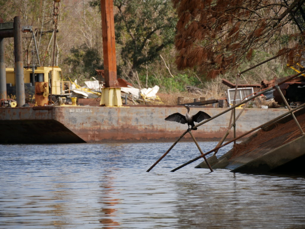 Die fast zweistündige Fahrt führt in zwei unterschiedliche Bereiche des Sumpfgebietes. Rechts on der alten Brücke befinden sich Abwrackzonen für alte Ölplattformen, links steht das Gelände unter dem Schutz der Wildhüter. Hier können wir auch einige Ibisse und Kormorane beobachten. Ansonsten fasziniert vor allem der gespenstische Mangrovenwald.