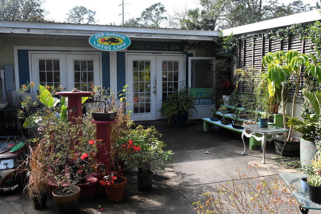 Nach einem kurzen Abstecher zum öffentlichen Strand hinter unserem Motel verlassen wir Panama City Beach. Unser heutiges Frühstück ist besonders gesund. Bevor wir weiter in Richtung Südosten fahren, „stolpern“ wir auf der Suche nach einer sinnvollen Frühstücks-Alternative zufällig ins Lotus Café mit angeschlossenem