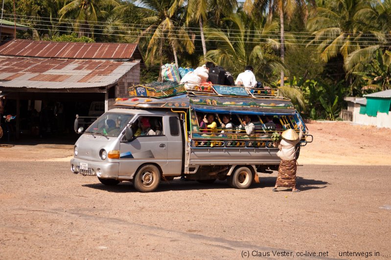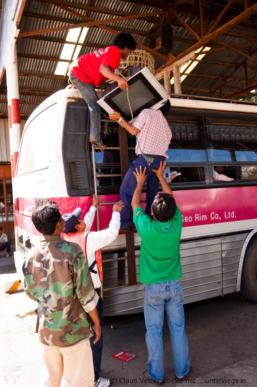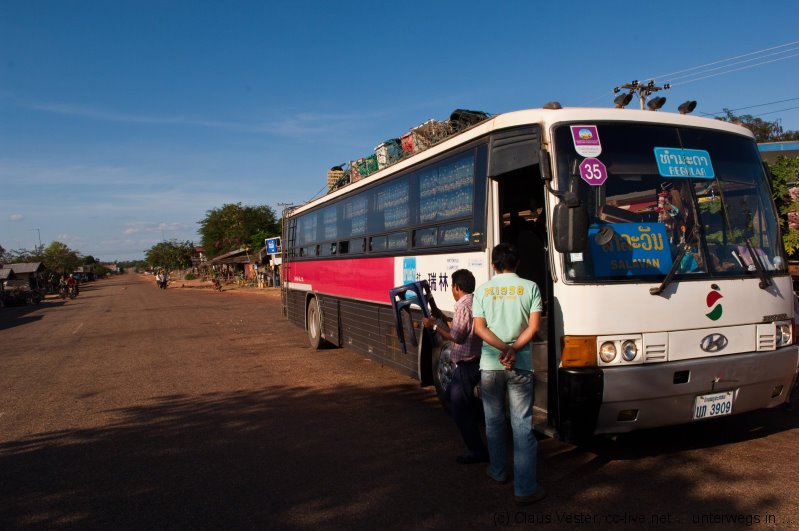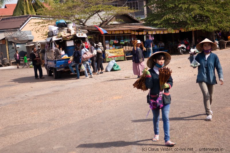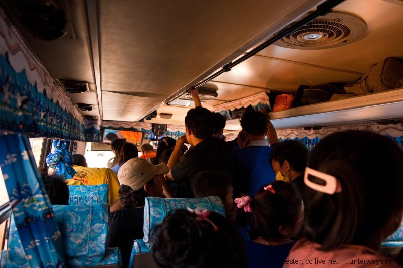 Da das vietnamesische Konsulat über Neujahr noch einen weiteren Tag geschlossen war und wir für die Einreise nach Vietnam über Land ein Visum gebraucht hätten, wurde kurzerhand umdisponiert und der Bus in Richtung Mekong Islands geentert. Doch diesmal hielt der Linienbus fast an jeder Milchkanne auf dem Weg, so dass wir erst gegen Abend in Pakse eintrafen und dort noch eine Übernachtung fällig war.