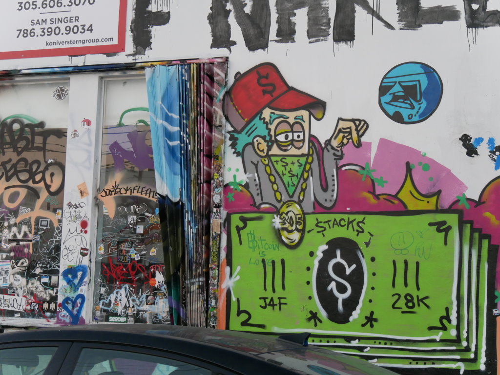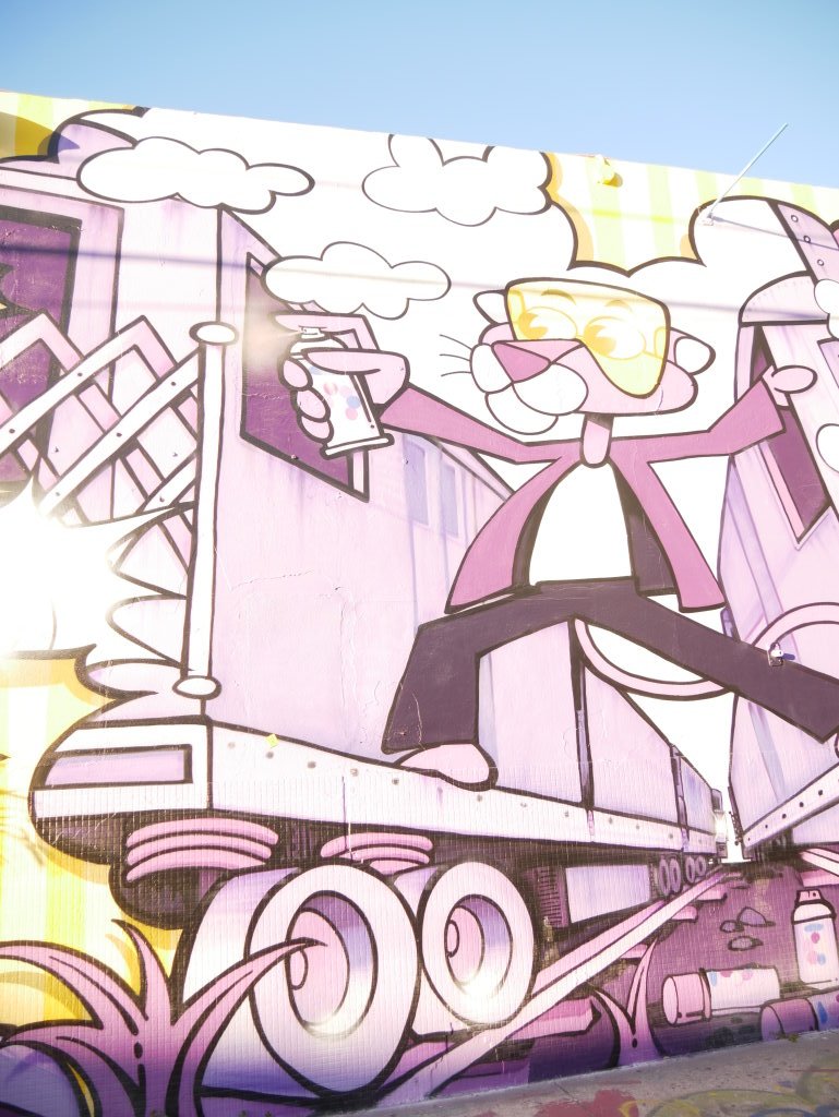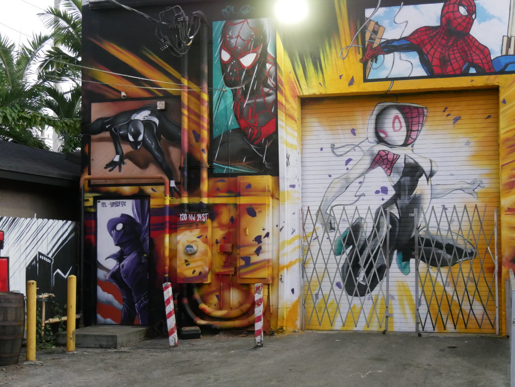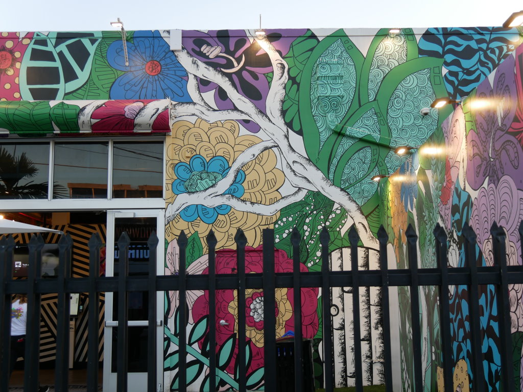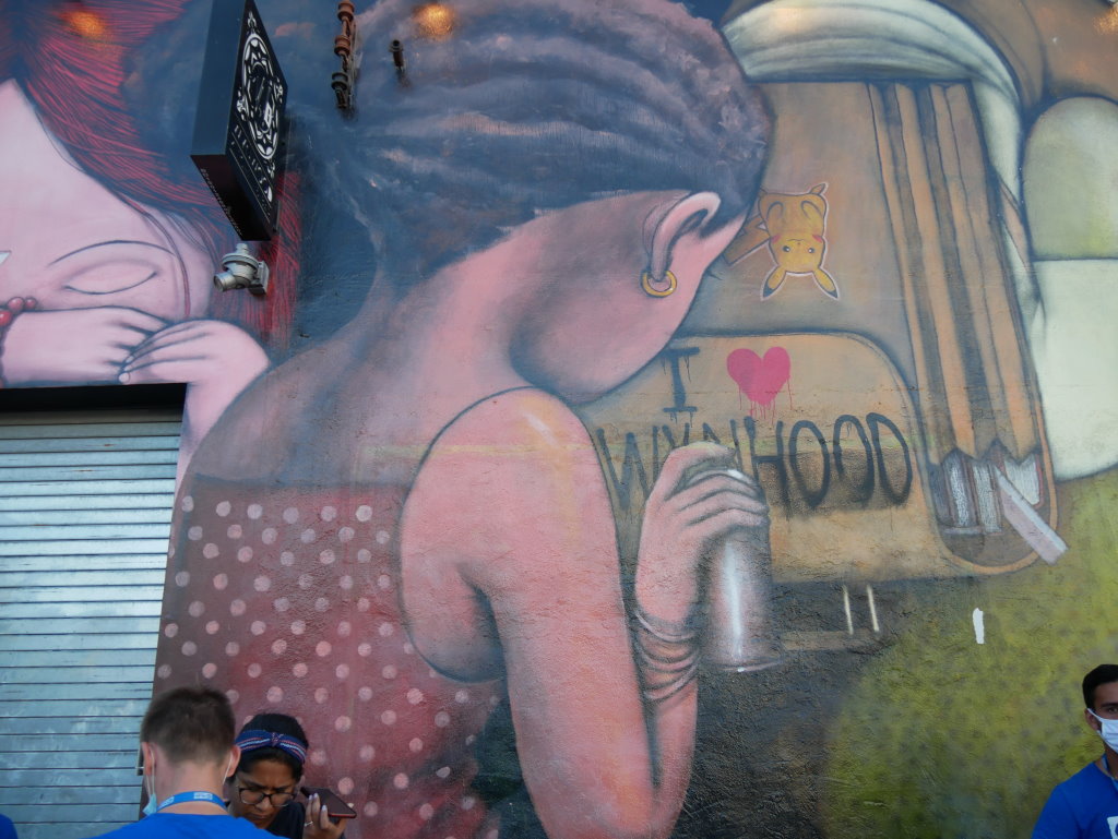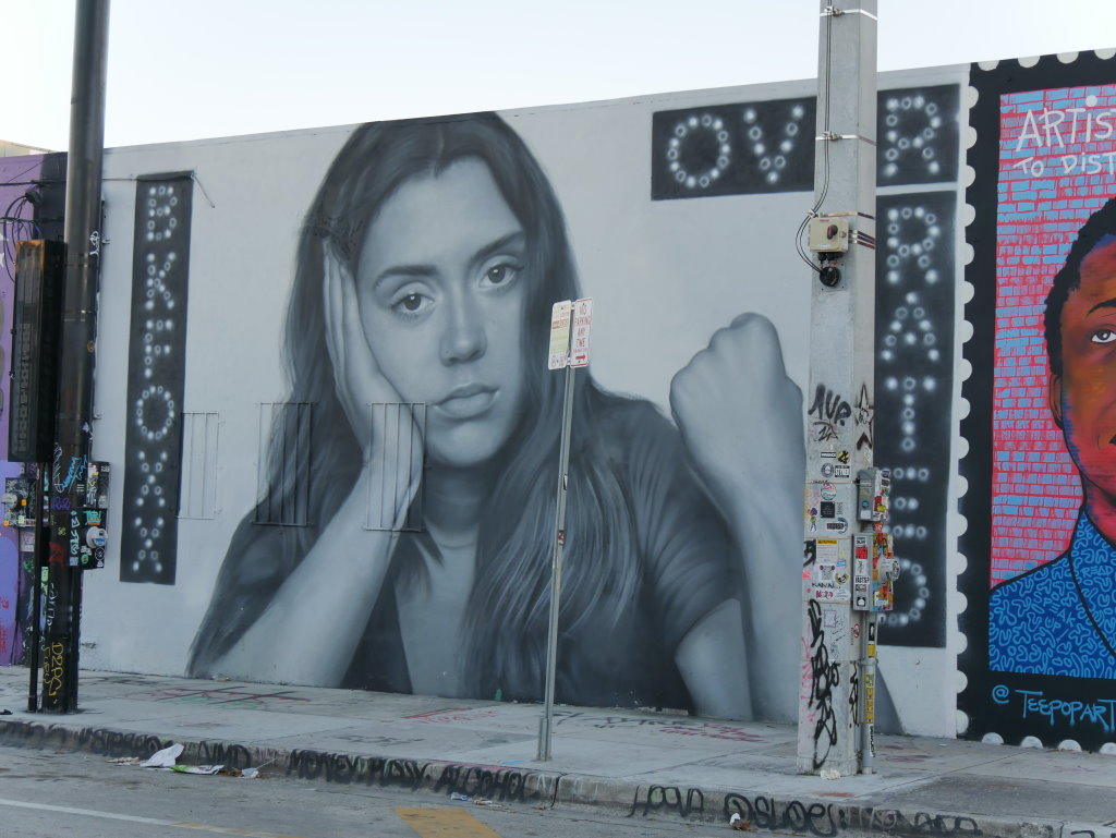 In bonbonfarbene Pastellfarben getauchte Architektur und Jan Hammers Titelmelodie von Miami Vice, mit diesem Bild von Miami bin ich in den 1980er-Jahren aufgewachsen.. Das passte auch 2006 noch, als ich zum ersten Mal hier war und meine fernsehgeprägten Erinnerungen voll bestätigt fand. Heute hat sich das geändert. Die schiere Flut der Street Art Werke im Stadtteil Wynwood sprengt alles, was ich mit Cosy auf unseren letzten Reisen bislang in diesem Zusammenhang gesehen habe.