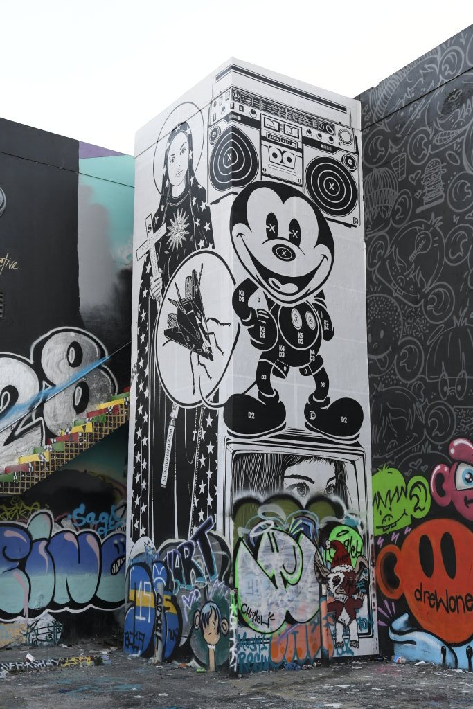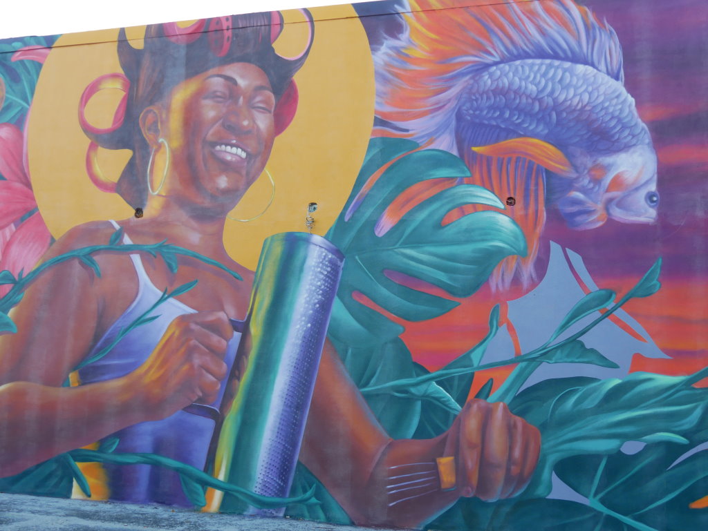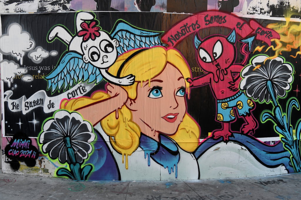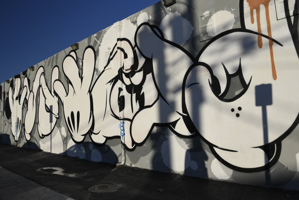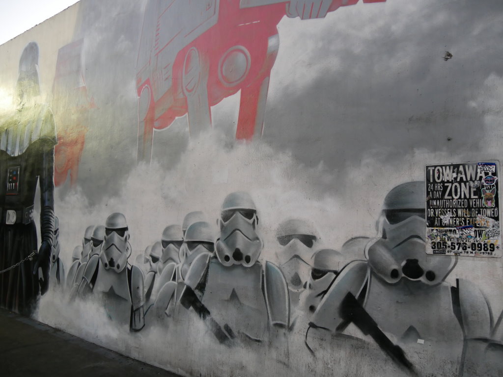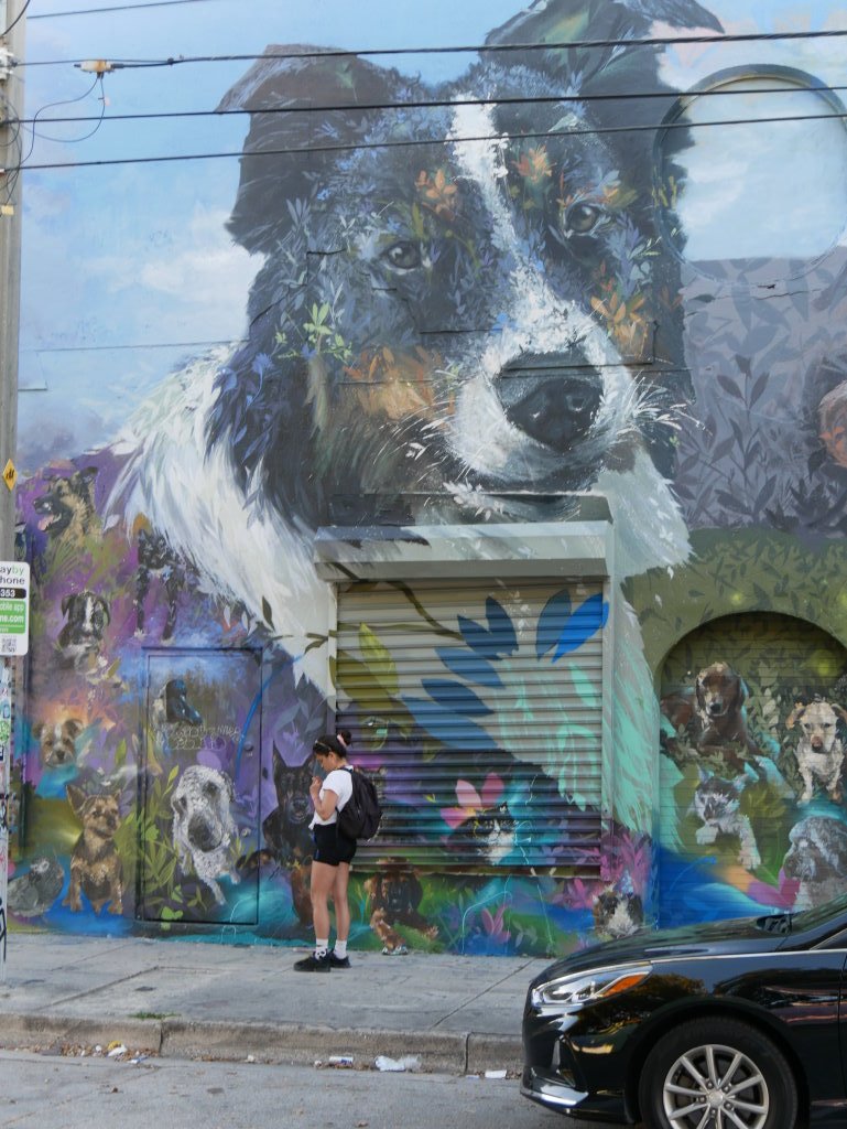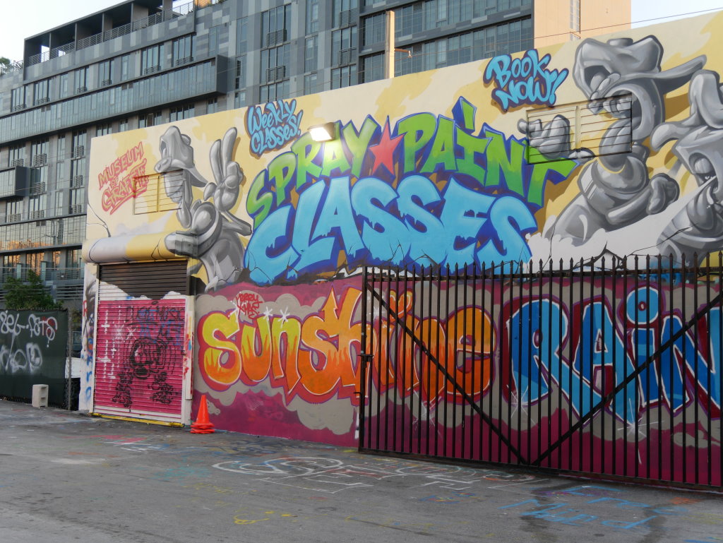 In bonbonfarbene Pastellfarben getauchte Architektur und Jan Hammers Titelmelodie von Miami Vice, mit diesem Bild von Miami bin ich in den 1980er-Jahren aufgewachsen.. Das passte auch 2006 noch, als ich zum ersten Mal hier war und meine fernsehgeprägten Erinnerungen voll bestätigt fand. Heute hat sich das geändert. Die schiere Flut der Street Art Werke im Stadtteil Wynwood sprengt alles, was ich mit Cosy auf unseren letzten Reisen bislang in diesem Zusammenhang gesehen habe.