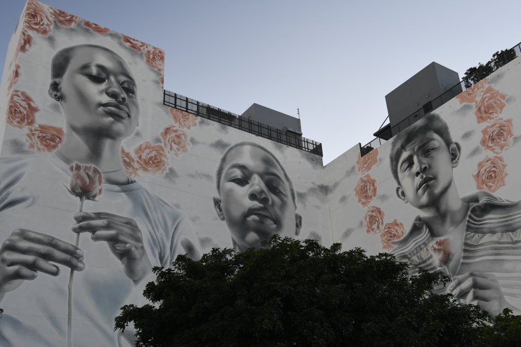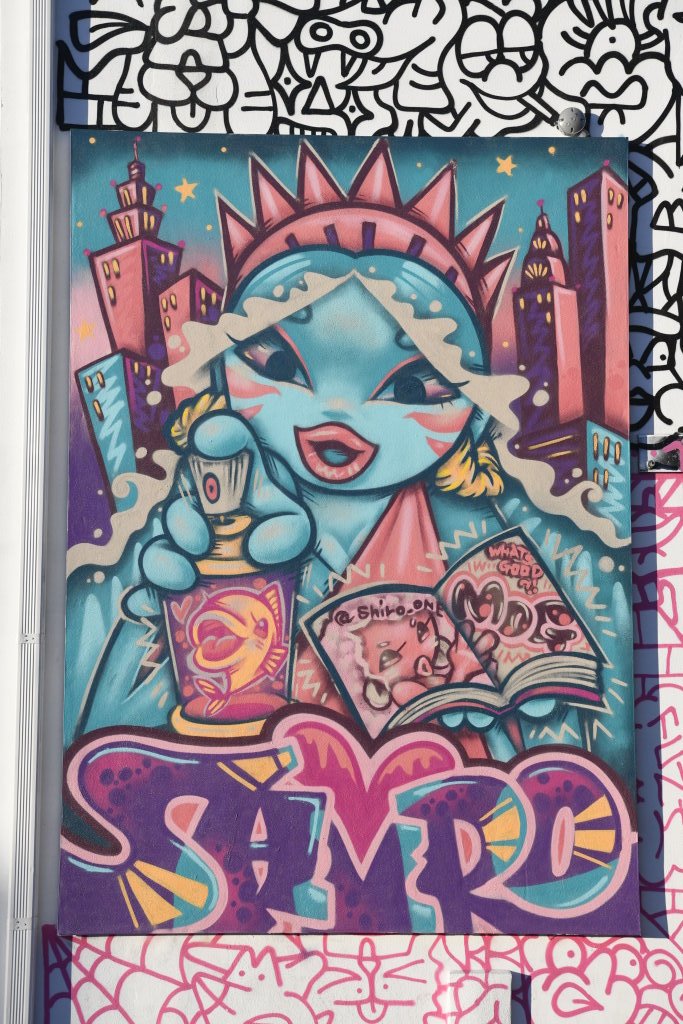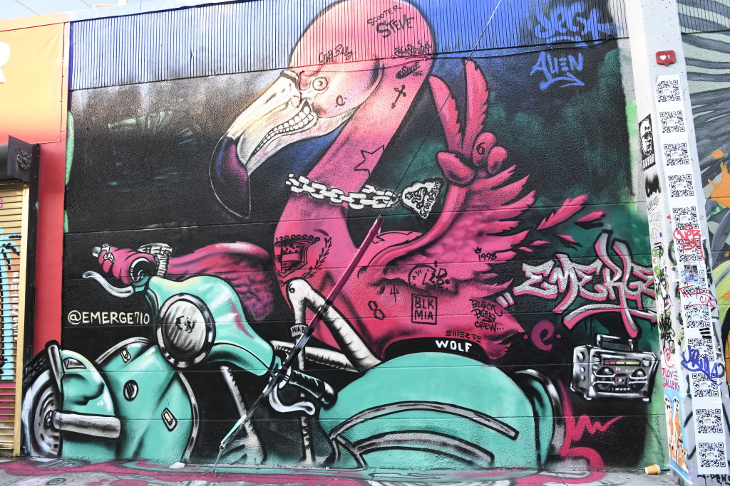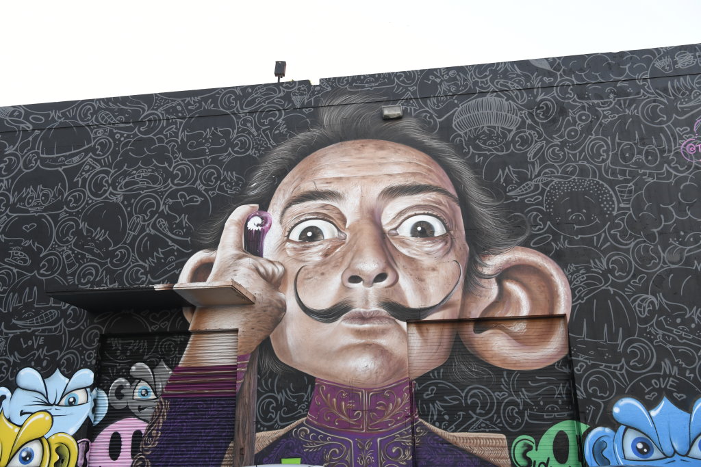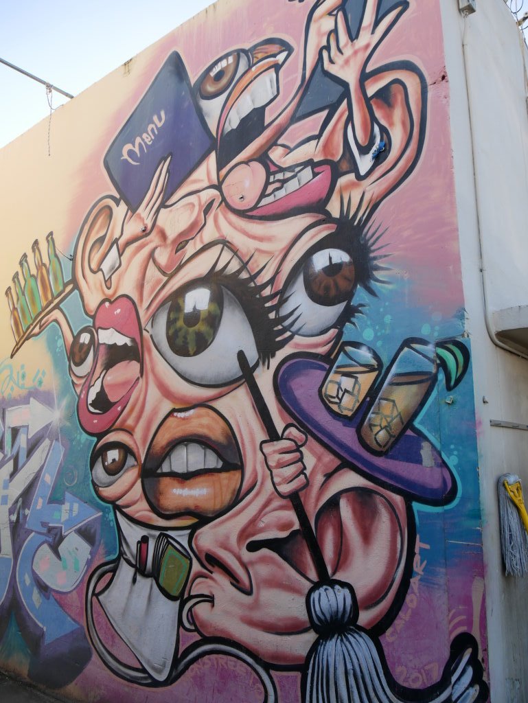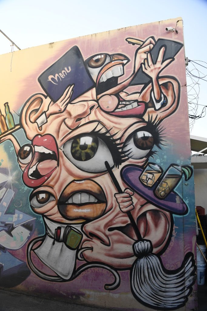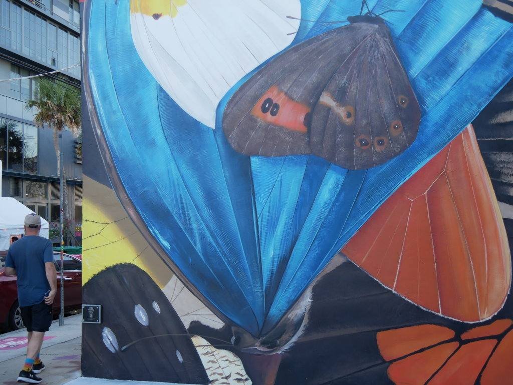 In bonbonfarbene Pastellfarben getauchte Architektur und Jan Hammers Titelmelodie von Miami Vice, mit diesem Bild von Miami bin ich in den 1980er-Jahren aufgewachsen.. Das passte auch 2006 noch, als ich zum ersten Mal hier war und meine fernsehgeprägten Erinnerungen voll bestätigt fand. Heute hat sich das geändert. Die schiere Flut der Street Art Werke im Stadtteil Wynwood sprengt alles, was ich mit Cosy auf unseren letzten Reisen bislang in diesem Zusammenhang gesehen habe.
