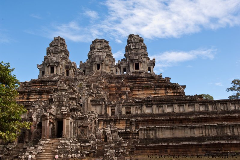Unser TukTuk Fahrer Samrit Ruot spricht zwar nur rudimentär Englisch, aber er kennt sich bestens aus auf dem Gelände von Angkor Wat. Zeitversetzt zu den großen Touristenströmen bringt er uns antizyklisch zu den wichtigsten Tempeln (und Ananas-Verkäuferinnen).
