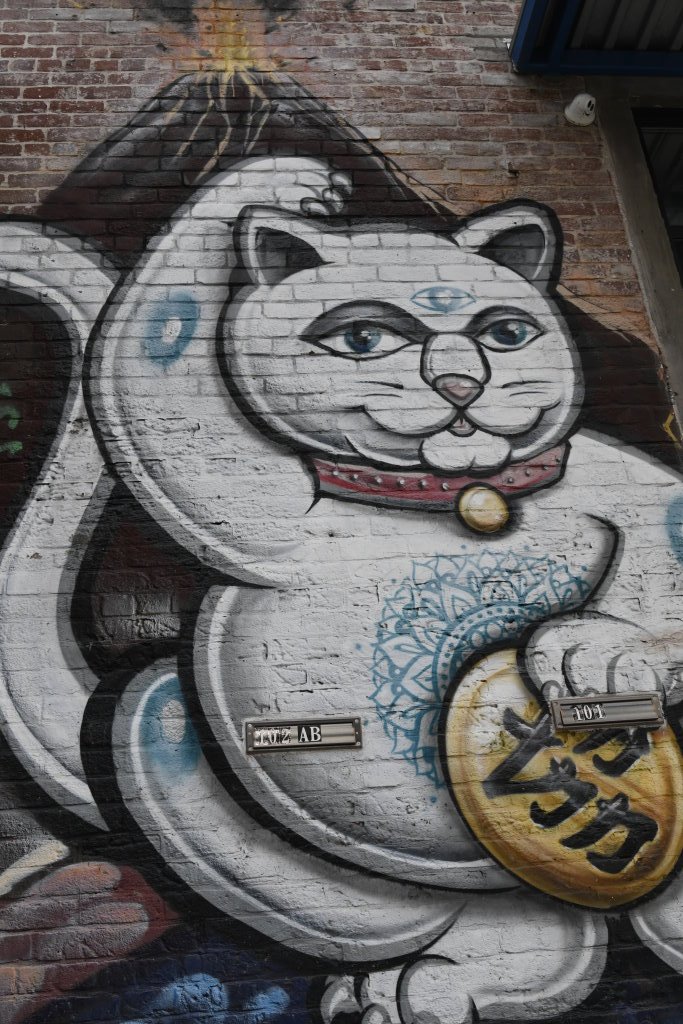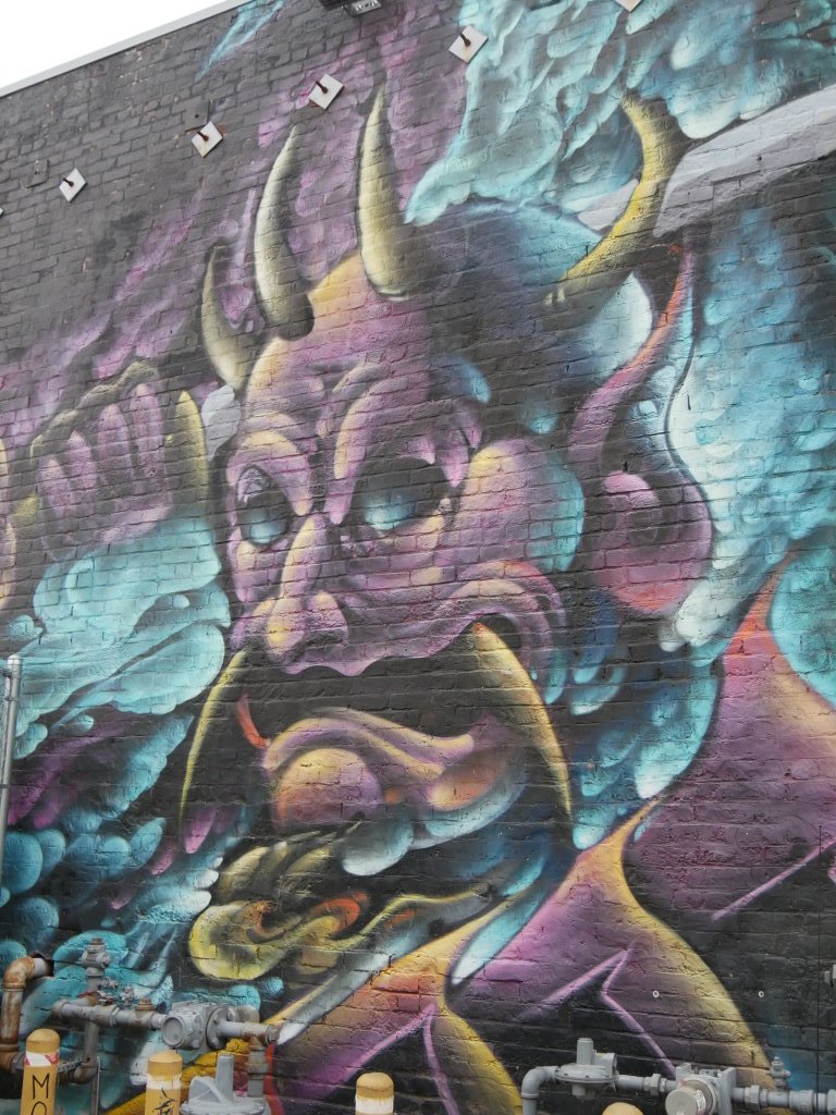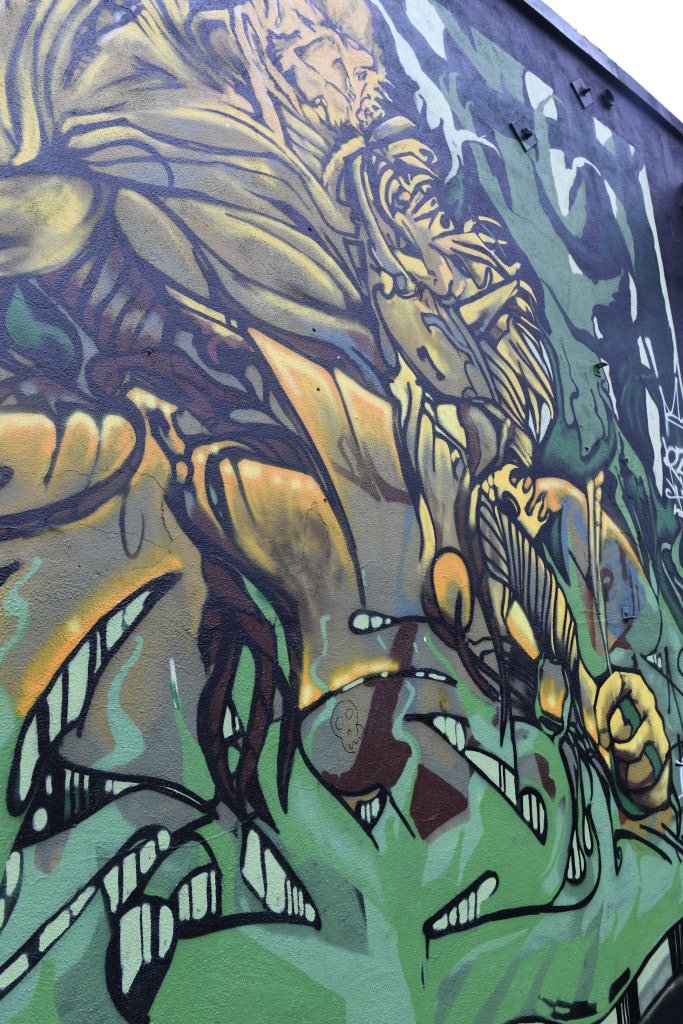 An den Fassaden unzähliger Lagerhäuser entlang der Straße, aber auch versteckt in Seitengassen oder auf Parkplätzen haben sich unzählige Künstler ausgetobt.