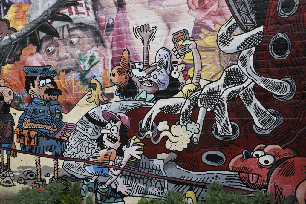 Alles in diesem Viertel wirkt organischer und irgendwie authentischer als im Wynwood Art District von Miami, den wir auf unserer letzten Winterreise erkundeten. Man weiß nicht, wohin zuerst gucken, wenn man um die nächste Ecke biegt. Mal lockt ein fotorealistisches Wandgemälde, mal ein Wimmelbild, auf dem sich die Charaktere eines grellbunten Comics austoben.