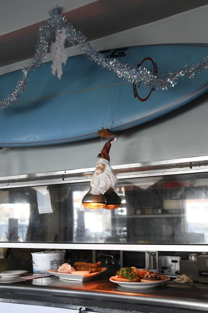 Die guten Surf-Möglichkeiten am langen Pazifikstrand haben Huntington Beach auch den Namen Surf-City verliehen. Kein Wunder, dass selbst an einer der Decken von Woody’s ein paar Bretter hängen.