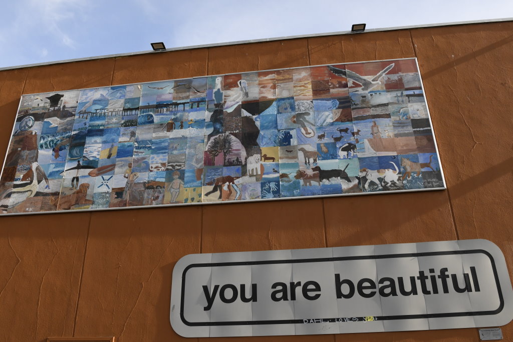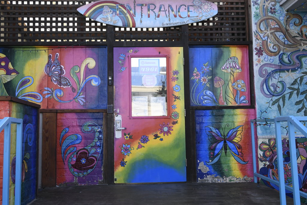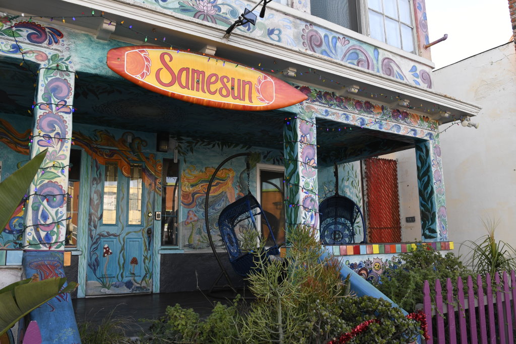 Eine halbe Stunde später sind wir dann im Ocean Beach Distrikt von San Diego angekommen, wo wir die nächsten Tage bleiben wollen. Graffitis an en Fassaden („The Summer of Love“ etc) und die Fassade unserer Unterkunft sind eindeutig. Es ist wie eine Zeitreise in die Welt des Regenbogens, die Hippie-Zeit der 60er und 70er Jahre. Das damalige Lebensgefühl durchströmt die Straßen und hat auch die heutige Generation erfasst.