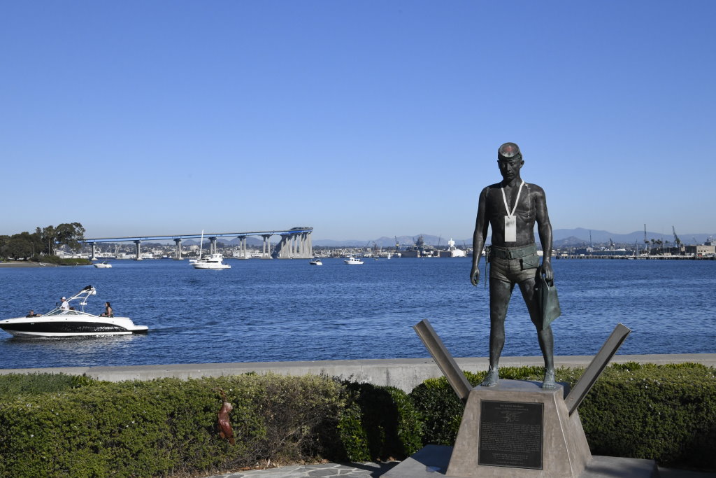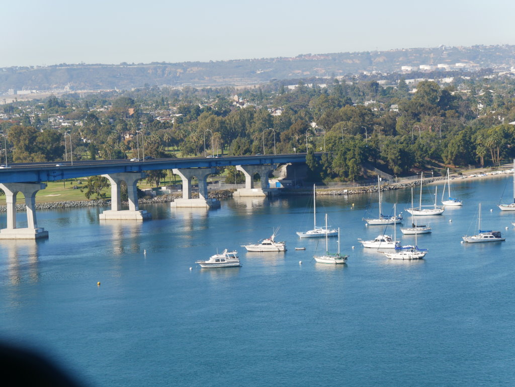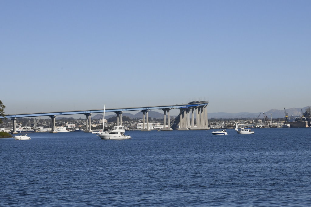 Wir starten zu einem kleinen Ausflug nach Coronado. Das Küstenstädtchen befindet sich auf einer Halbinsel gegenüber von San Diego. Schon bei der Überquerung der San Diego Bay über die 4,5 Kilometer lange Coronado Brücke fallen uns einige Graffiti an den Betonstützen am Ende der Brücke ins Auge. Das wollen wir uns auf der Rückfahrt genauer ansehen.