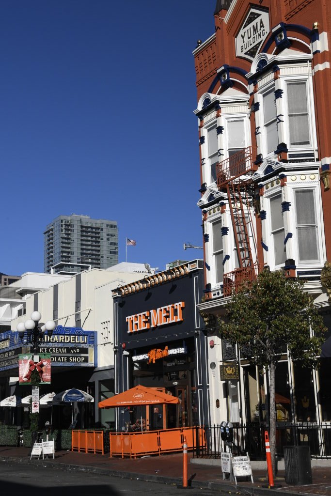 Nach einem Abstecher zu einer überdimensionalen Skulptur des berühmten küssenden Seemanns im Tuna Harbor Park beenden wir unseren heutiger Tagestrip mit einem kleinen Spaziergang durchs Gaslamp Quarter im historischen Stadtkern San Diegos.