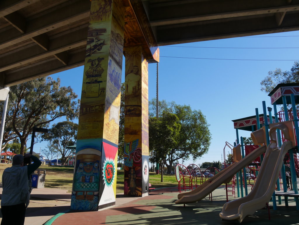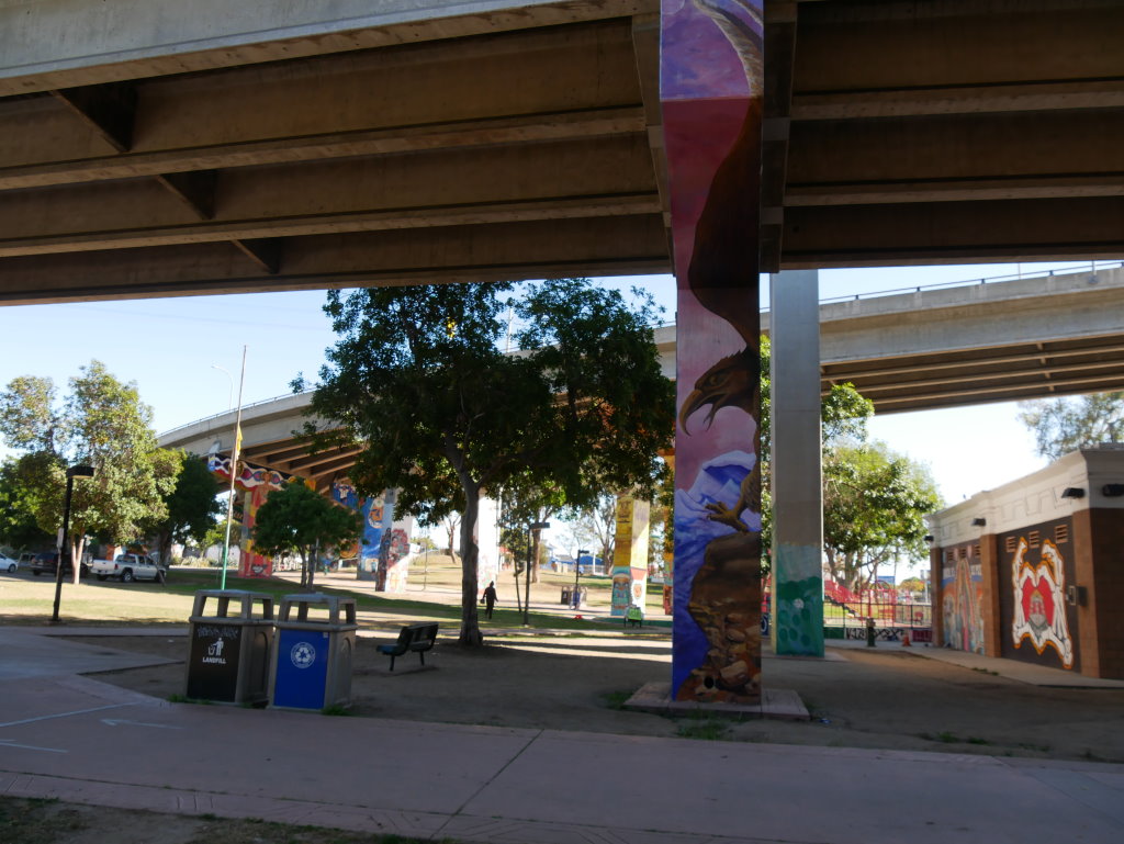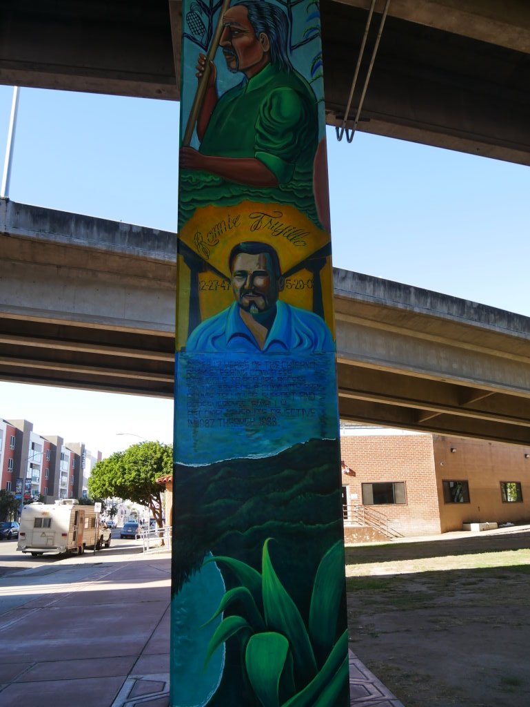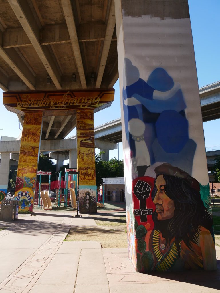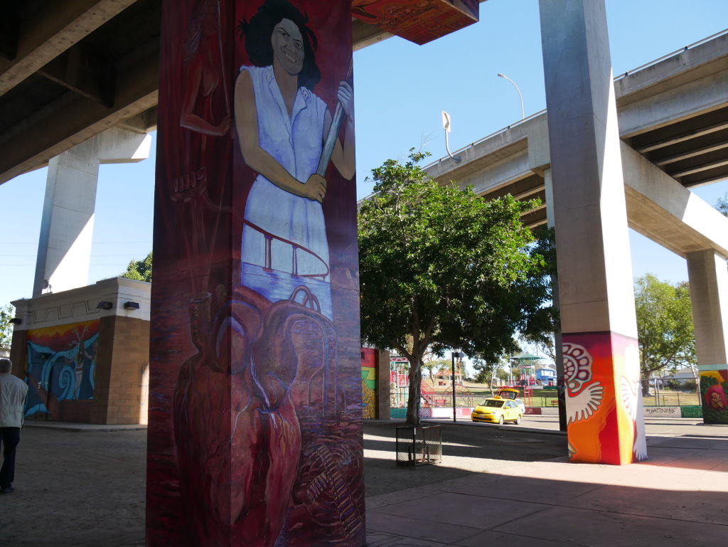 Nach einem Spaziergang am Silver Beach entlang geht’s auch schon wieder zurück zur Brücke und schnurstracks zum anvisierten Chicano Park unter den Brückenpfeilern. In dem 3 Hektar großen Park befindet sich mit 72 (oder mehr) Murals die größte Sammlung dieser Wandmalereien in Kalifornien.