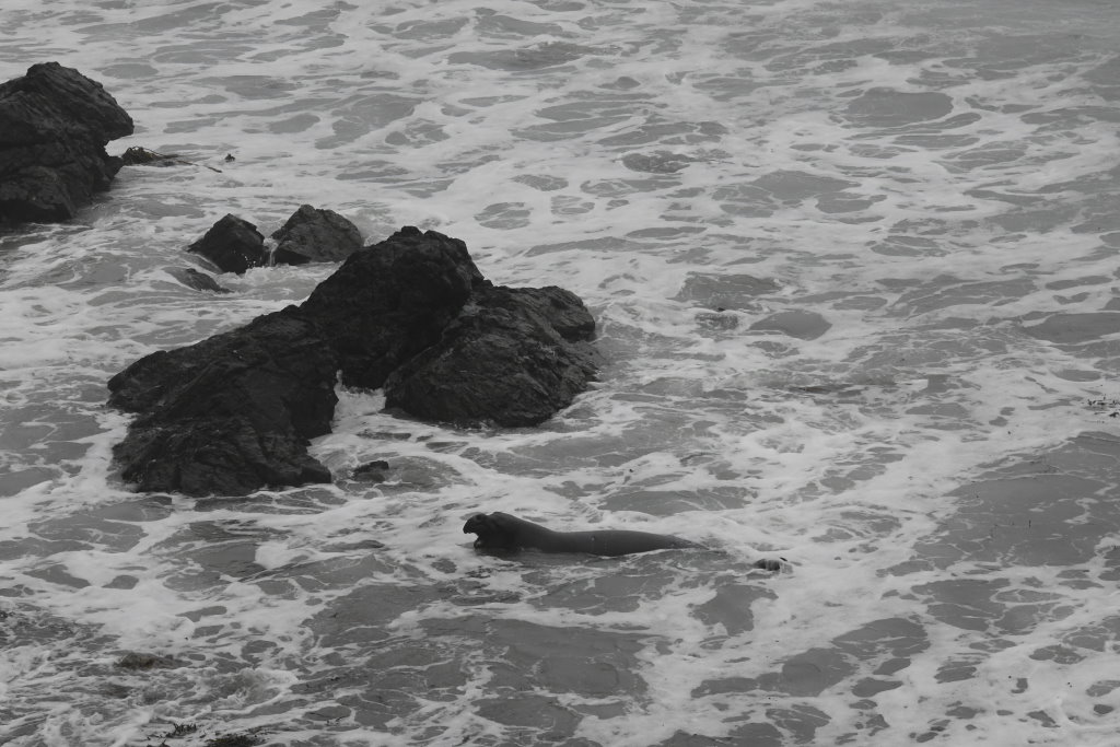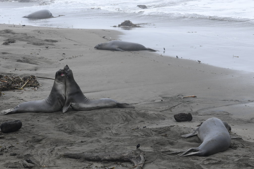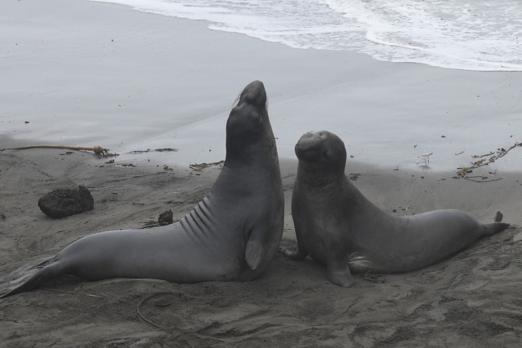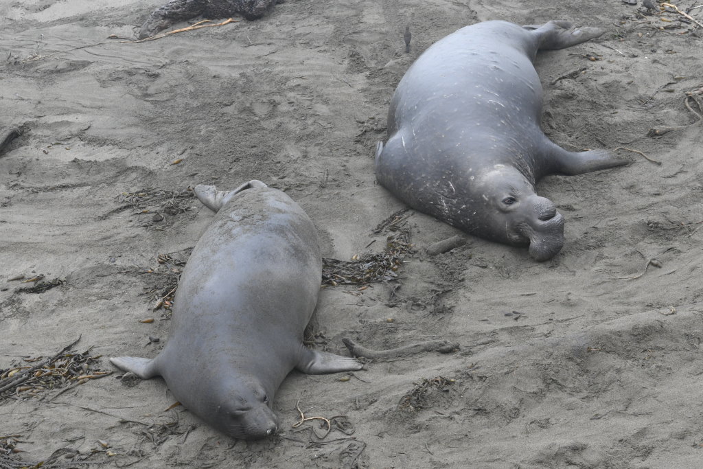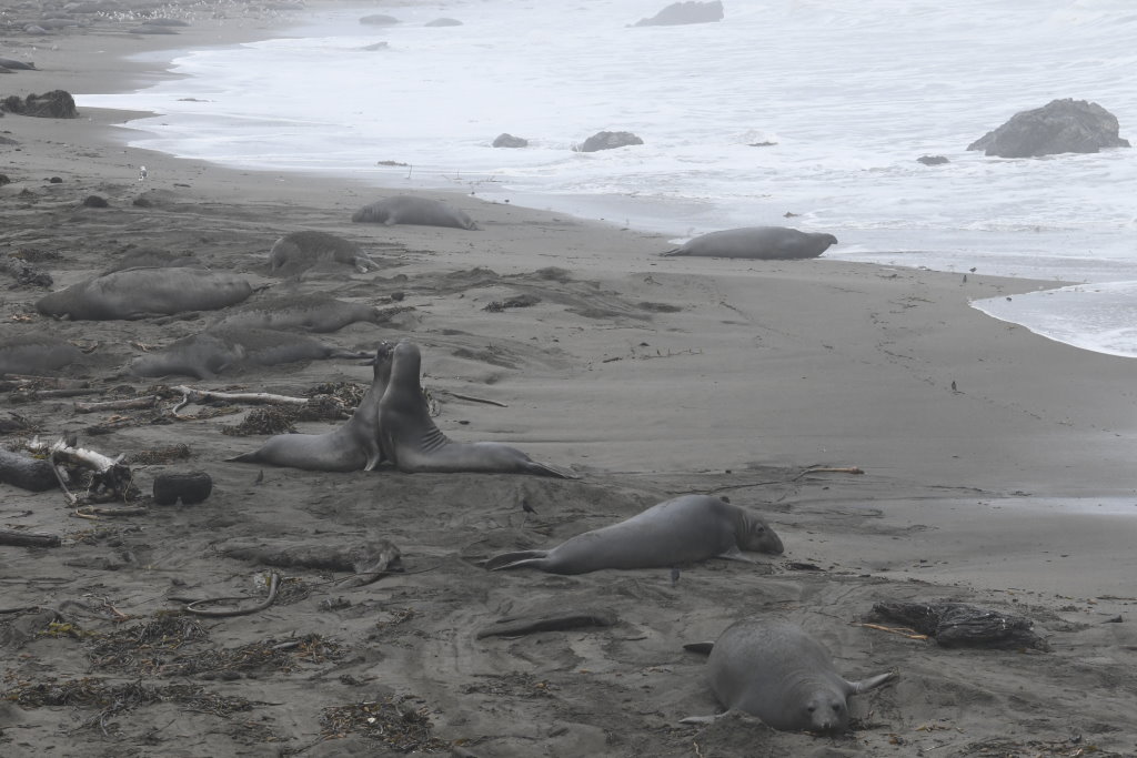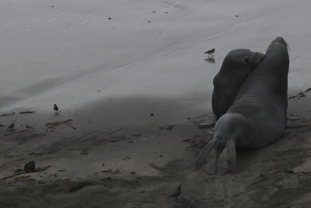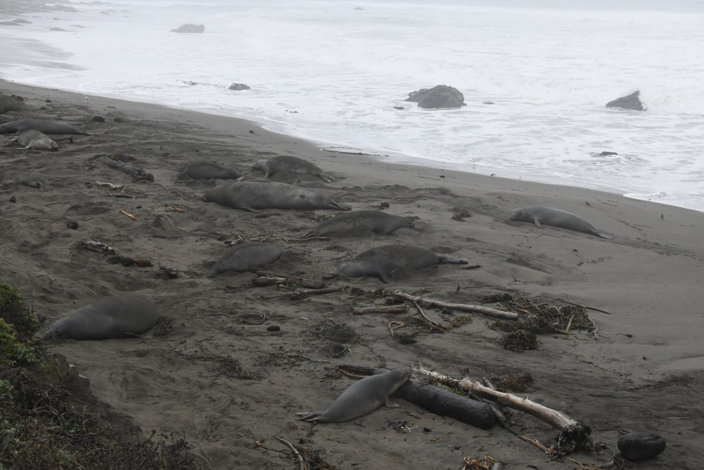 Zum Glück legt der Regen gerade eine kurze Pause ein. Einige Meilen weiter nördlich befindet sich an der Strandpromenade von Piedras Blancas eine große Kolonie von See-Elefanten. Hier leben Tausende dieser weltweit größten Robbenart, die um die 3,7 Meter lang werden und zwischen 1.100 bis 1.400 Kilogramm wiegen können.