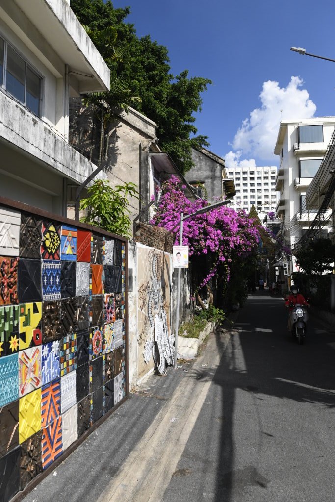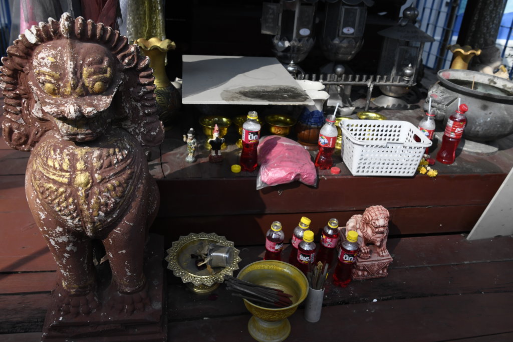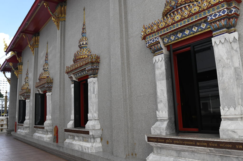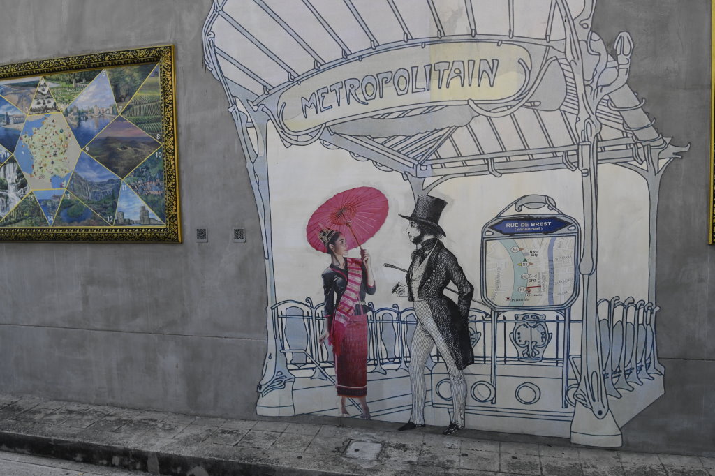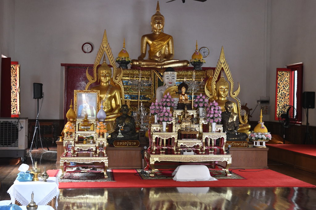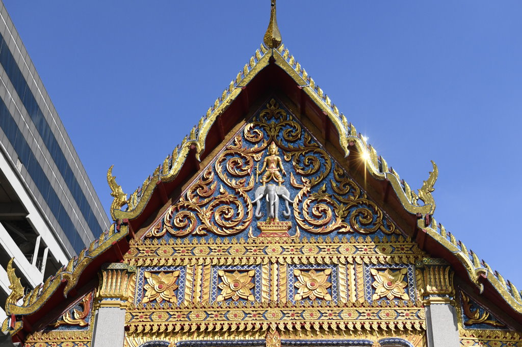 Nach einem späten Frühstück erkunden wir erst einmal die Umgebung. Im Block hinter unserem Hotel befindet sich ein kleines buddhistisches Kloster. Die Mauer rund um den Wat wird von den zwölf Tierkreiszeichen des chinesischen Horoskops bevölkert: Ratte, Büffel, Tiger, Hase, Drache, Schlange, Pferd, Ziege, Affe, Hahn, Hund und Schwein.