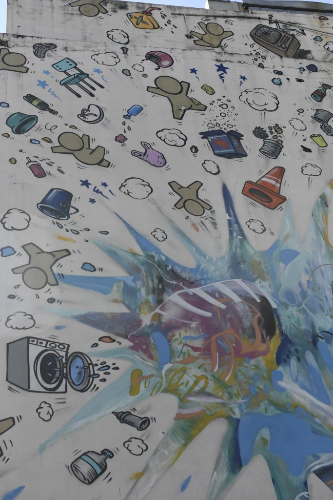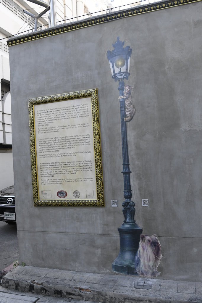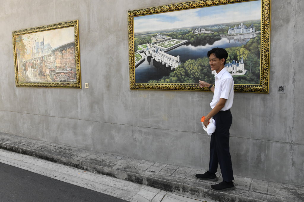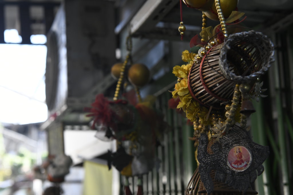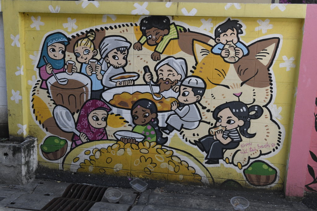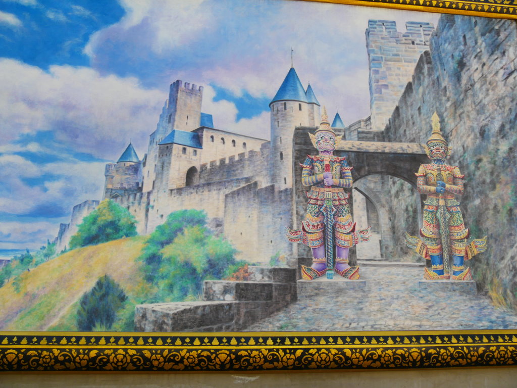 Nach einem späten Frühstück erkunden wir erst einmal die Umgebung. Im Block hinter unserem Hotel befindet sich ein kleines buddhistisches Kloster. Die Mauer rund um den Wat wird von den zwölf Tierkreiszeichen des chinesischen Horoskops bevölkert: Ratte, Büffel, Tiger, Hase, Drache, Schlange, Pferd, Ziege, Affe, Hahn, Hund und Schwein.