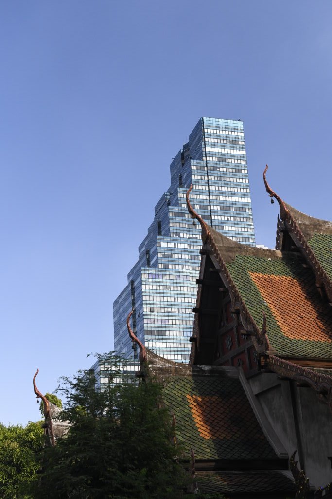 Bis auf einen Mönch am Balkon des Gebäudes nebenan sehen wir keine Menschenseele. Das ändert sich erst ein paar Straßen weitere, wo unweit des Mandarin Orientals zahlreiche Muslime gerade vom Freitagsgebet zurückkommen.