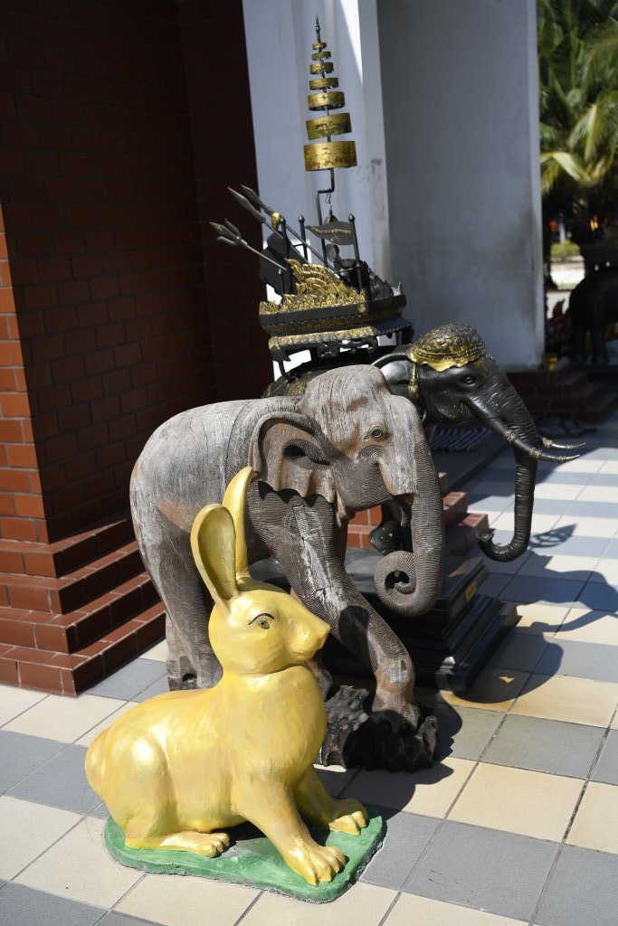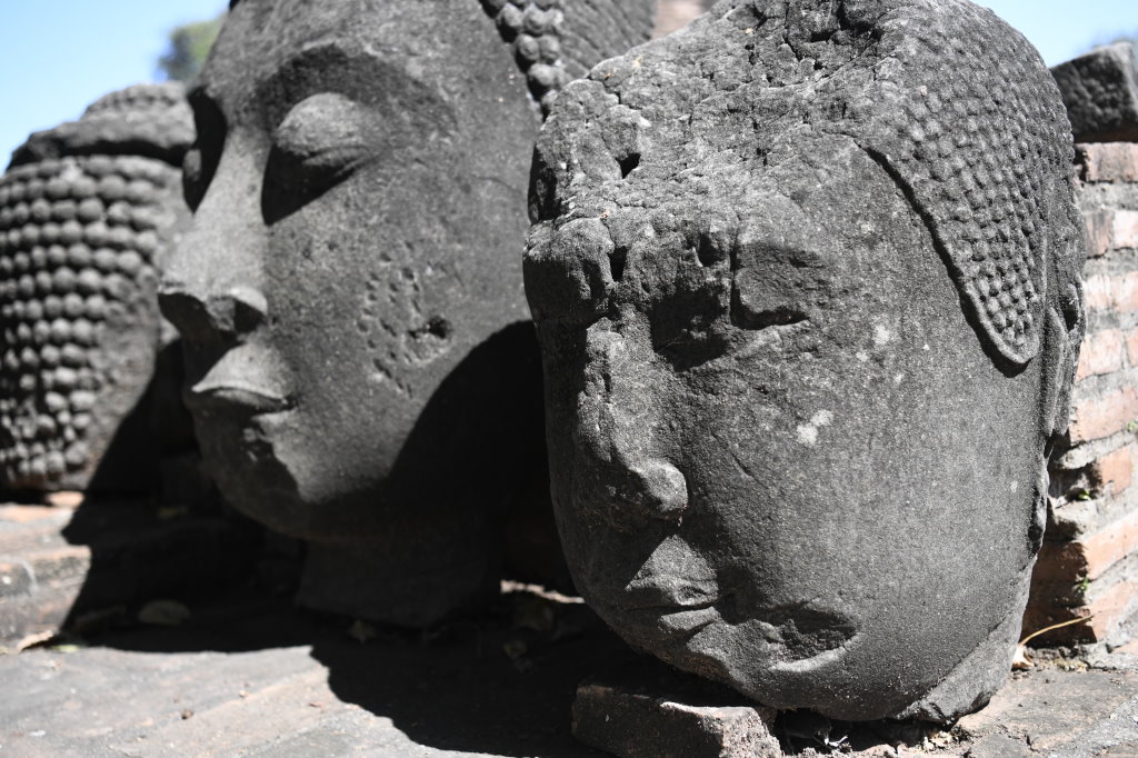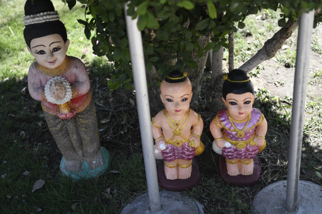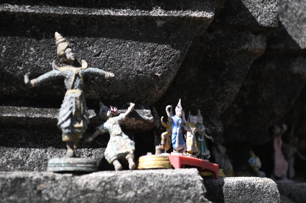 Unser Fahrer erweist sich als Glücksfall. Er hat uns nicht nur diesen Zwischenstopp empfohlen, sondern führt uns auch zu einer weiteren liegenden Buddha-Statue, diec sich außerhalb des Gevierts befindet und die wir ohne ihn wahrscheinlich nicht gefunden hätten.