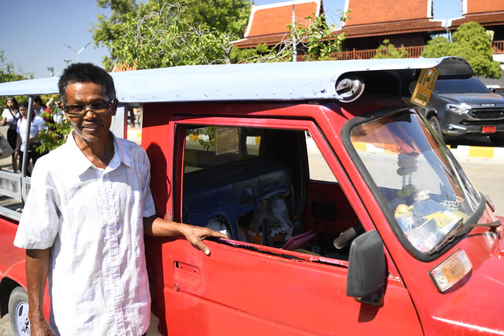 Die Wats im Geschichtspark von Ayuttaya kann man problemlos zu Fuß oder einem Leihrad aufsuchen. Das hatten wir beim letzten Mal auch so gemacht und dann festgestellt, dass es noch ein paar sehenswerte Tempelanlagen etwas außerhalb am Stadtrand gibt. Bei prallem Sonnenschein und 32 Grad ist die Entscheidung schnell gefallen.