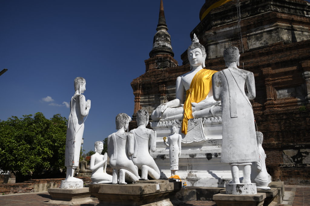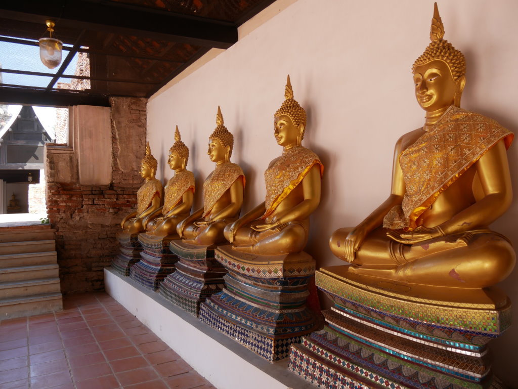Auch die Fahrt zum auf der gegenüberliegenden Parkseite gelegenen Wat Chai Watthanaram ist mit dem Tuk-Tuk kein Problem, Unterbrechung am Wat Phutthaisawan inklusive: Auf dem Gelände befindet sich aber nicht nur ein beeindruckender maiskolbenförmiger Prang, den wir gemeinam ansteuern.