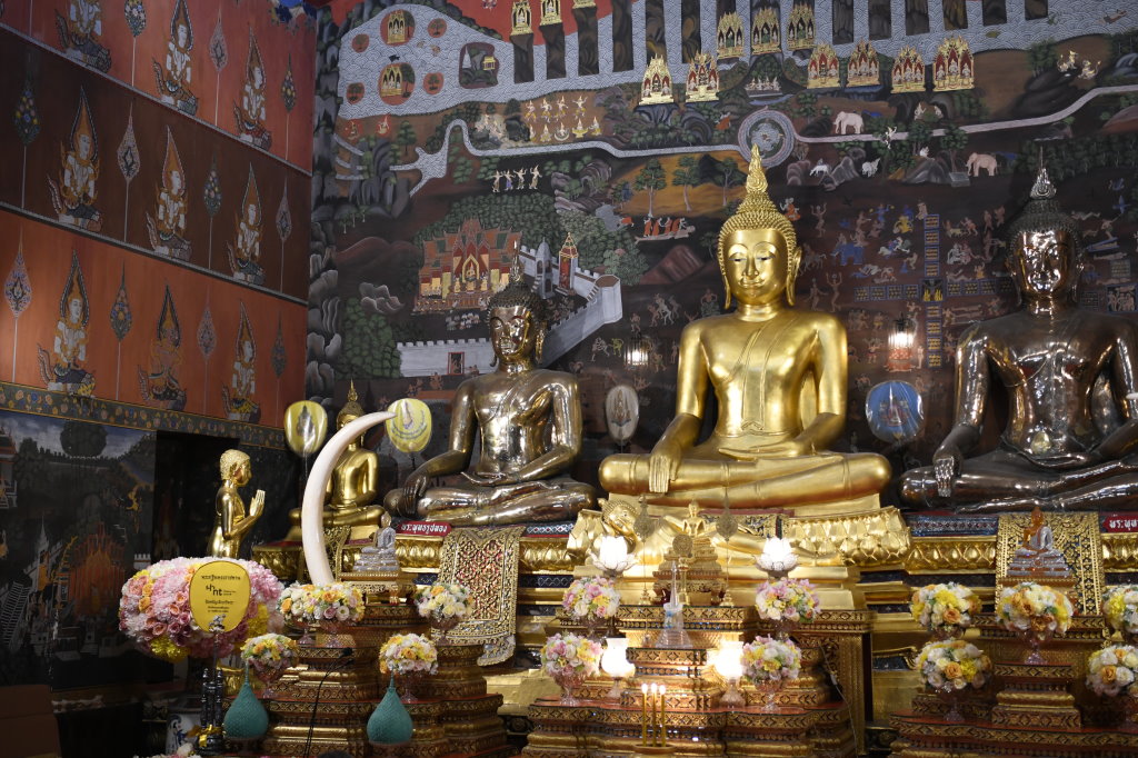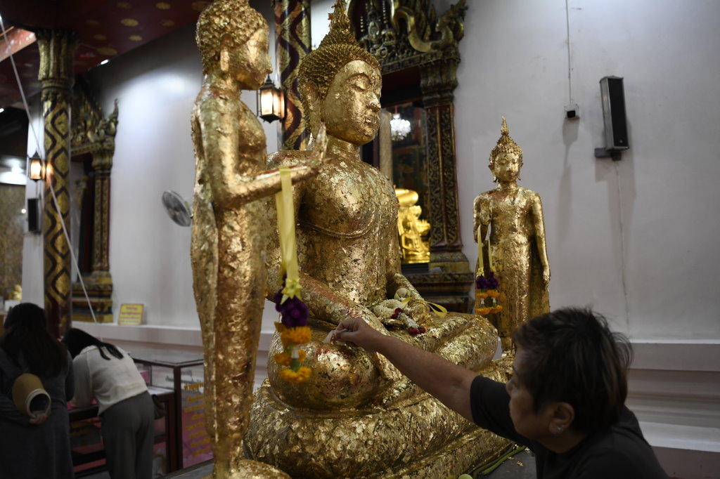 Weiter geht’s zum Wat Phanan Choeng. In dieser aktiven buddhistischen Tempelanlage hockt eine 19 Meter hohe vergoldete Buddha-Statue im Schneidersitz. Der „Luang Pho Tho“ wird als Beschützer des Handels und der Seefahrer verehrt. Nicht nur Räucherstäbchen und Lotosblumen werden hier geopfert, die kleineren Statuen in der vorgelagerten Halle werden von den Gläubigen mit Blattgold beklebt.