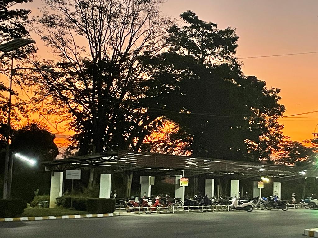 Nach sechseinhalb Stunden sind wir endlich am Ziel und werden mit einem perfekten Sonnenuntergang in Sukhothai begrüßt. Für die letzten 10 Kilometer zu unserem Quartier nehmen wir wieder ein Tuk-Tuk. Das wird wohl auch Morgen unsere bevorzugte Fortbewegungsart werden, wenn wir die Gegend zum dritten bzw. sechsten Mal erkunden. Es gibt ja immer etwas, was beim letzten Mal übersehen oder aus anderen Gründen verschoben wurde. Meine Großmutter wusste schon, dass es immer etwas geben muss, weshalb man wieder- bzw. zurückkommen kann…