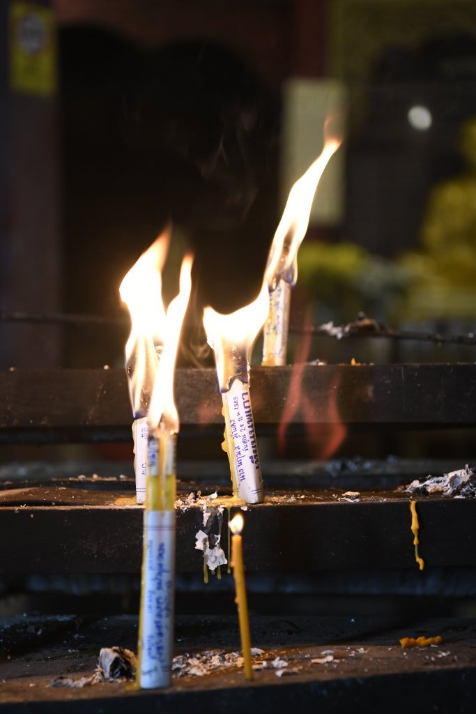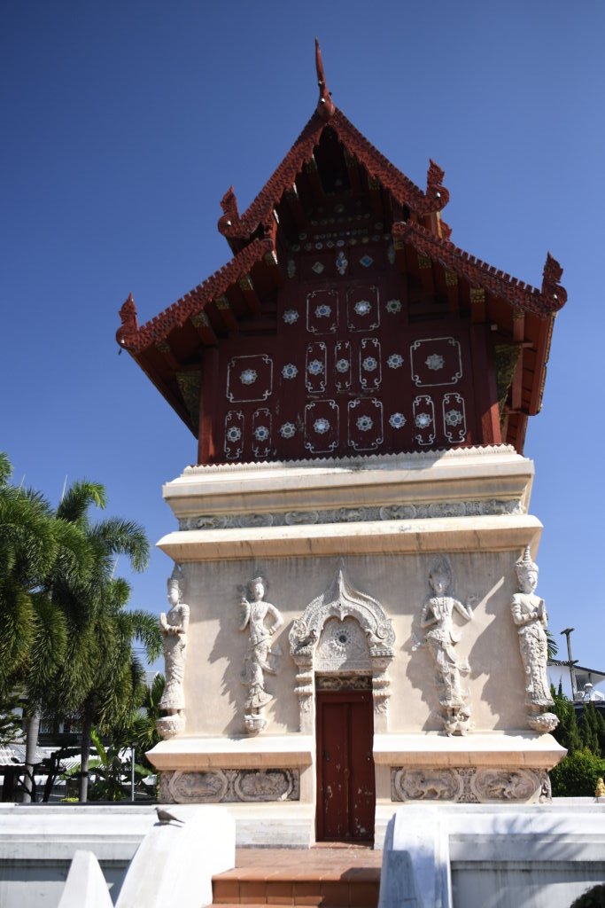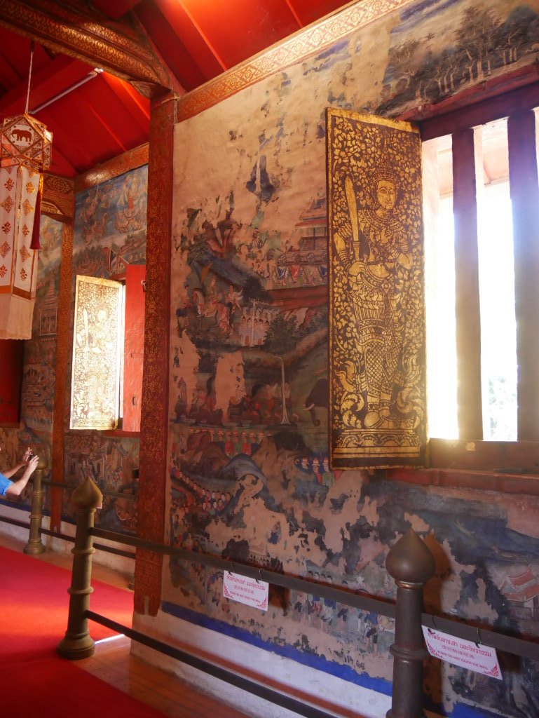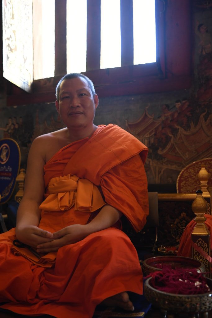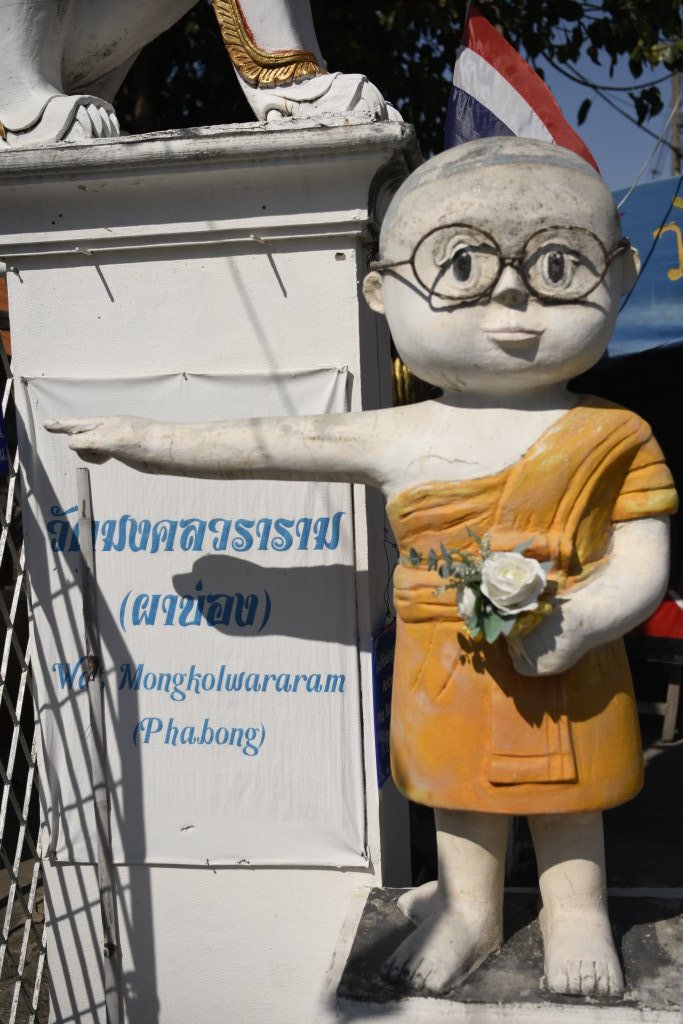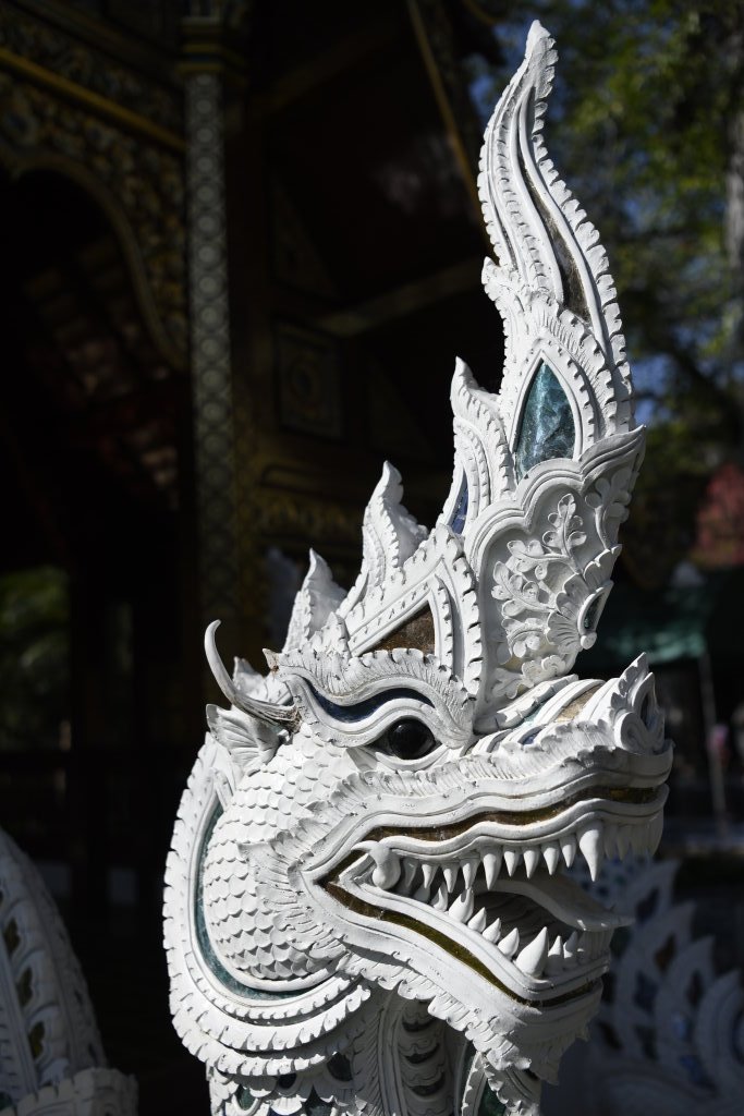 Unweit unseres Hotels befindet sich der Wat Pha Bong (Mangkhalaram), eine Ecke weiter wartet die weitläufigere Anlage des Wat Phra Singh. Beim Betreten des ersten Wihans zögern wir kurz. Vor und hinter dem Schrein mit den Buddhastatuen sitzen mehrere ältere Mönche in Meditation versunken. Wie verhält man sich da jetzt? Keine Wimper zuckt. Des Rätsels Lösung: aus der Nähe betrachtet entpuppen sich die frommen Männer als lebensechte Nachbildungen angesehener Mönche und Lehrer.