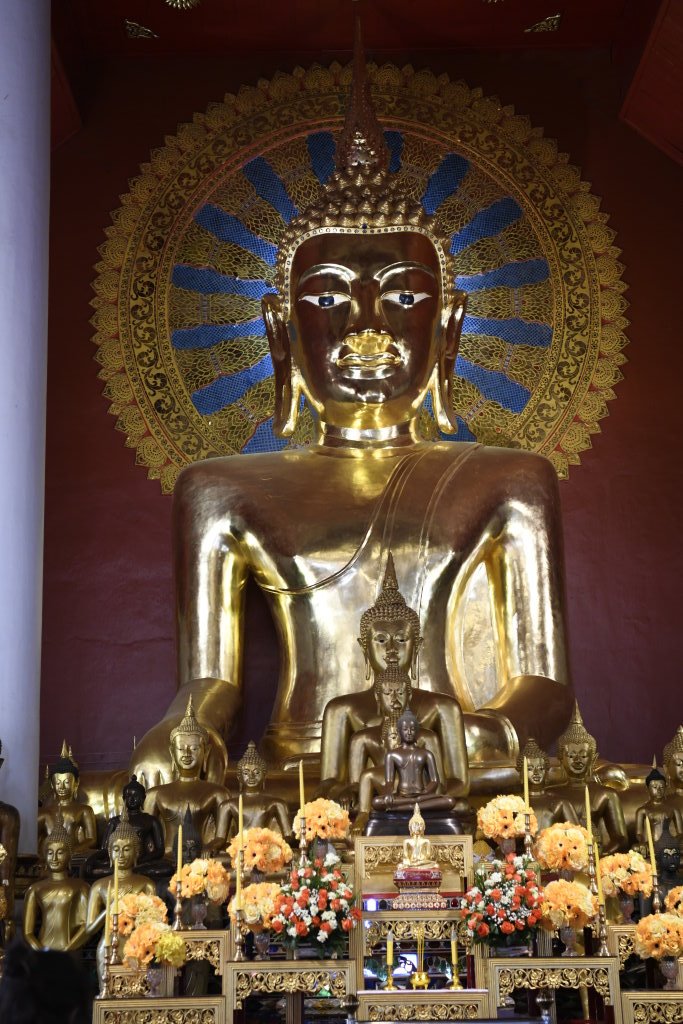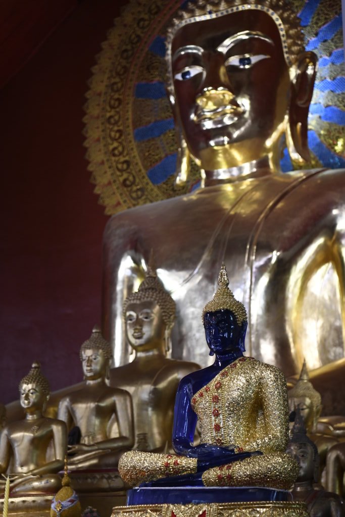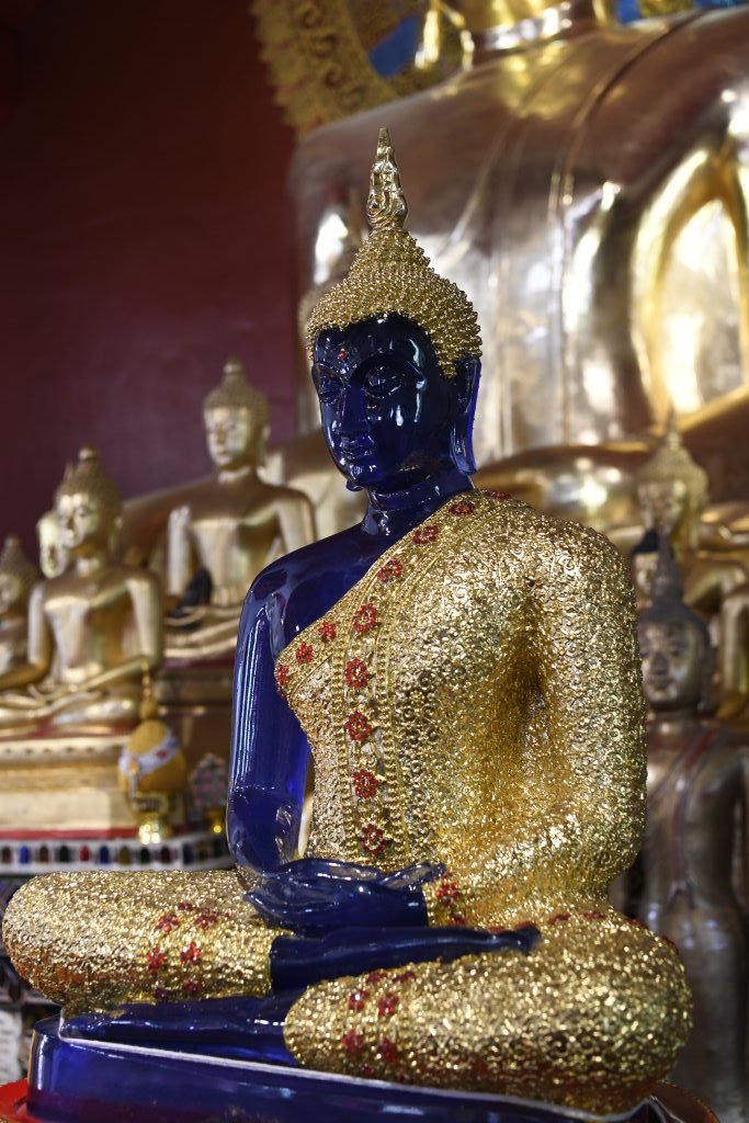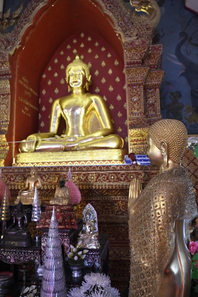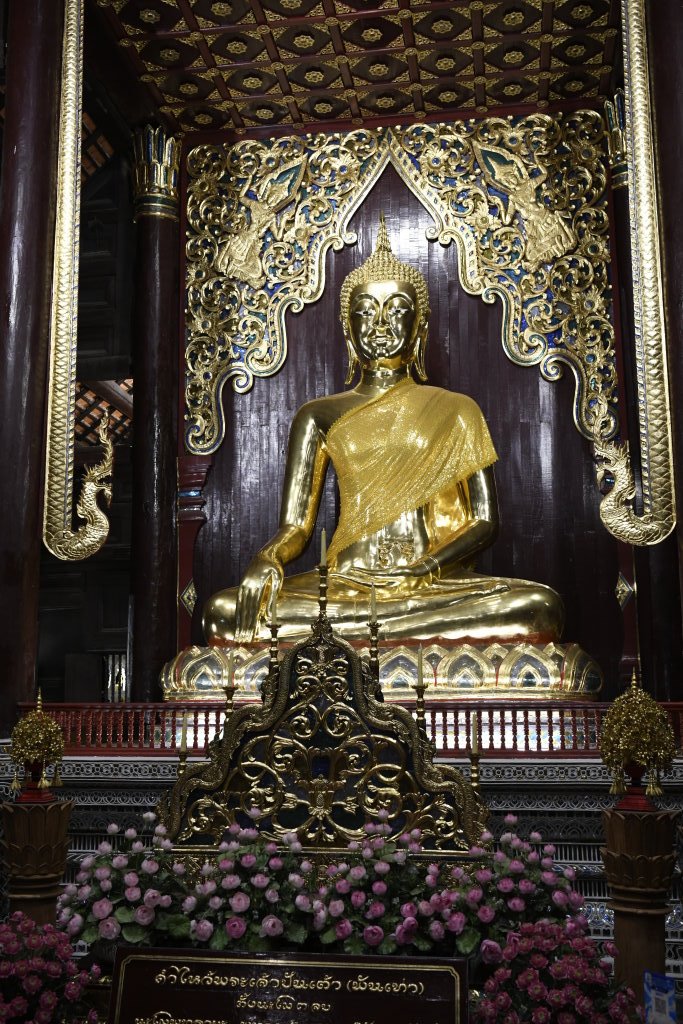 Nebenan im Wihan Lai Kham befindet sich der „Phra Phuttha Sihing“, eine Buddha-Statue, die angeblich aus dem Mahabodhi-Tempel in Bodhgaya in Indien stammen soll. Im Seitenschiff erteilt ein Mönch gegen einen kleinen Obolus seinen Segen, in dem er den Spender mit Wasser besprenkelt und ihm ein rotes Bändchen mit fünf Perlen ans rechte Handgelenk bindet. Unzählige weitere Buddha-Statuen stehen in einem weiteren Tempel auf dem Gelände der Anlage, im Wihan Luang.
