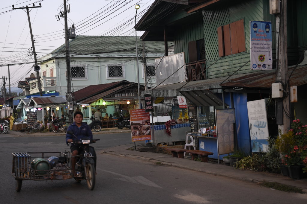 Es ist wieder da: Das Silverpacker-Feeling der ersten gemeinsamen Reisen, dass es so einfach macht, von der europäischen Taktung in den asiatischen Gelassenheitsmodus umzuschalten. Als der Minibus kurz vor Sonnenuntergang über die Straße jenseits der Grenze zu Thailand Ban Houayxay erreicht, scheint alles unverändert. Mal flattern an den Zäunen bunte, buddhistische Gebetsfahnen, mal die roten Fähnchen der laotischen kommunistischen Partei, gelegentlich kreuzt ein Moped und ein streunender Hund den Weg. Einer seiner Artgenossen bleibt selbstmordlüstern in der Fahrbahnmitte liegen, sollen doch die anderen ausweichen.