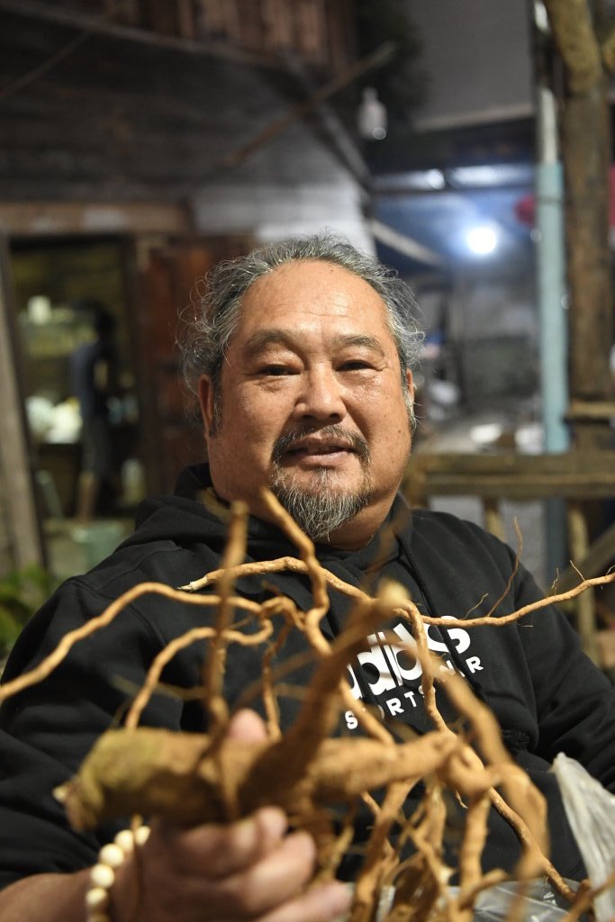 Die Wartezeit beim Einchecken in unserer Unterkunft überbrücke ich mit einem Gespräch mit einem Einheimischen auf der anderen Straßenseite. Vor ihm liegt eine Wurzel in einer Plastiktüte, das hat mich neugierig gemacht. Sein Name ist Sai, Bonsai nennen ihn seine Freunde plaudert er munter mit breitem australisch-gefärbten Englisch drauflos. Das habe aber nichts mit seiner Größe, sondern mit seinem Beruf zu tun. Der 59jährige Laote lebt seit 40 Jahren im australischen Canberra als Züchter dieses Minibäume und ist zu Besuch bei seiner Mutter hier. Das Wurzelwerk stammt von einer Auberginen-pflanze und dient einem ganz anderen Zweck. Mit ihr soll der allseits beliebte Lao-Lao Schnaps eines Freundes veredelt werden, den er in den nächsten Tagen in der nähe von Luang Prabang besuchen will…