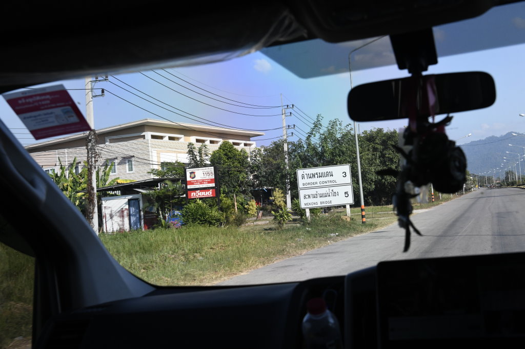 Für den Grenzübertritt müssen wir auf der einen Seite der Lao-Thai-Freundschaftsbrücke-Nummer-4 den Kleinbus verlassen und werden nach den üblichen Ausreiseformalitäten mit einem Linienbus über den Mekong transportiert. Dort warten gleich mehrere, sich offensichtlich gegenseitig kontrollierende Beamte, die das Einreiseprozedere in 5 Etappen begleiten, angefangen mit einer ersten Passkontrolle, dem Kassieren von 40 Baht Stempelgeld und einer Gebühr von ebenfalls 40 Baht fürs digitale Passfoto bis zum Einsammeln der 40 Dollar, wahlweise auch 1.800 Baht fürs Visa-on-Arrival und abschließendem Scan des bestätigenden QR-Codes am Ausgang des Checkpoints. Dort werden wir dann wieder in einen Minibus verfrachtet, der uns nach Ban Houayxay bringt.