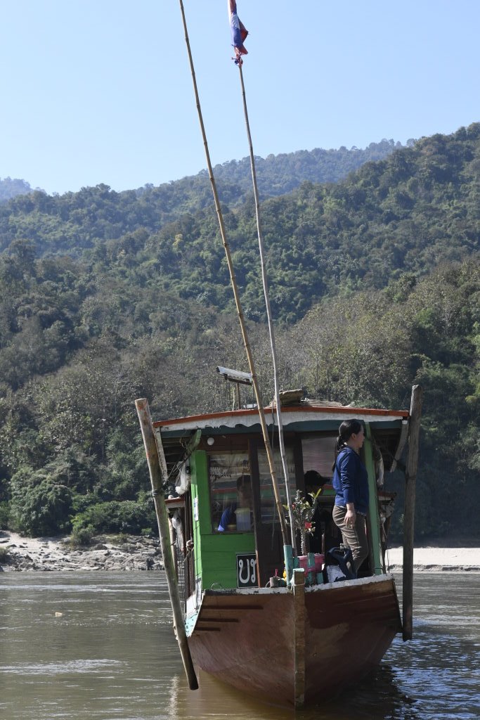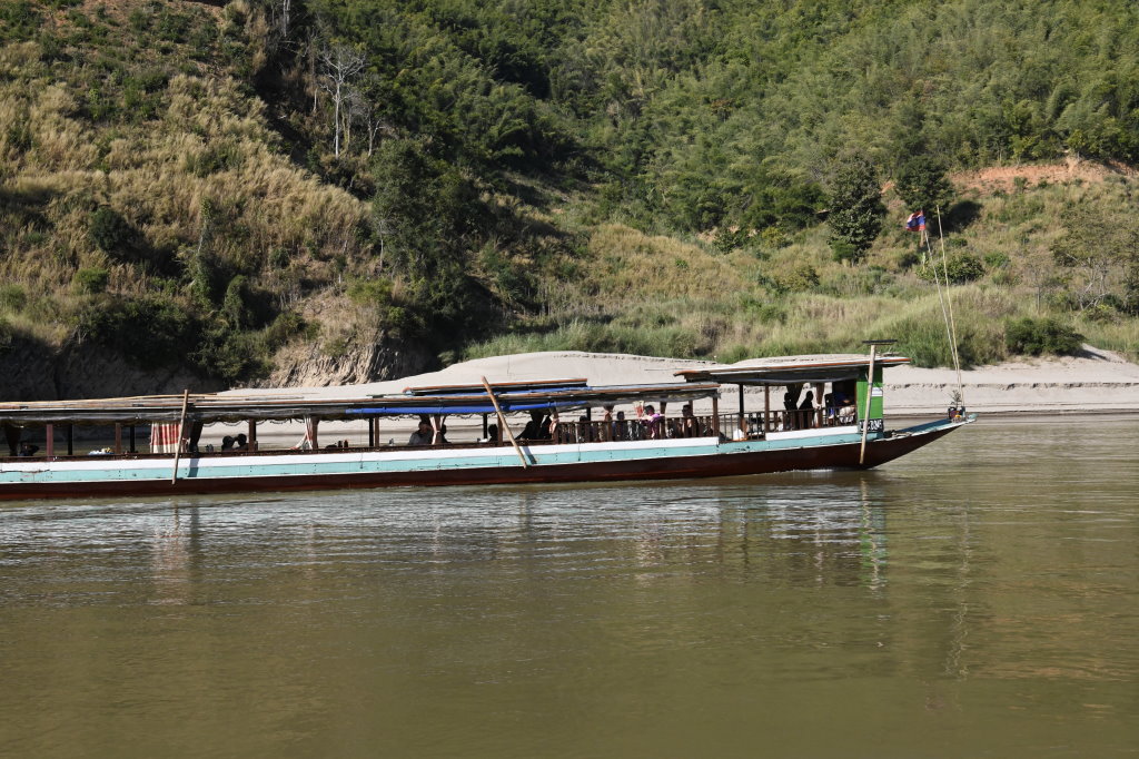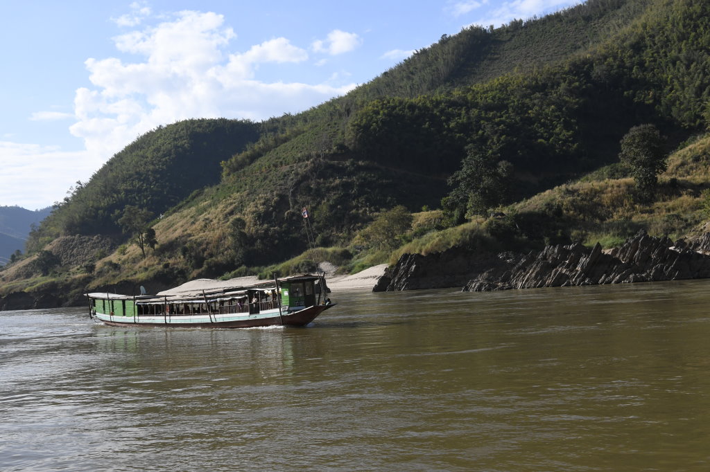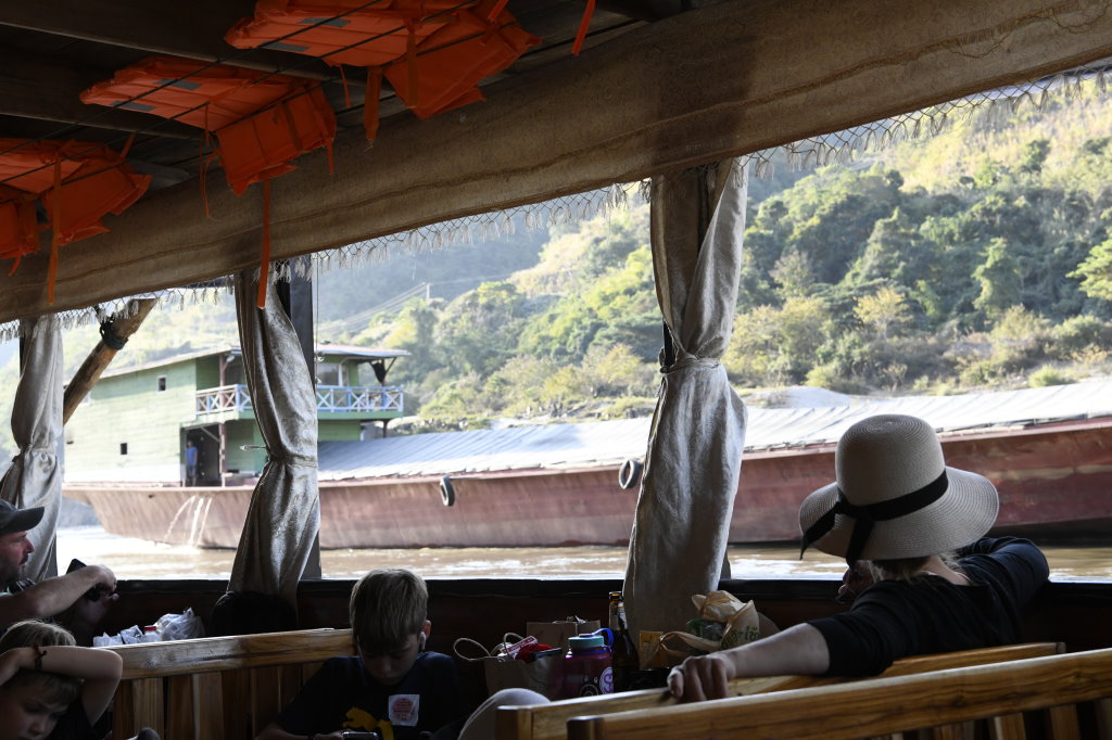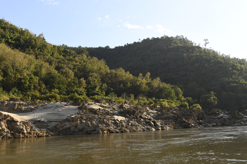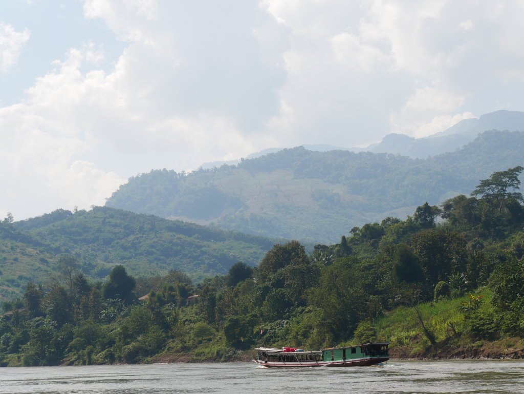 Der Mekong scheint sich zunehmend regelrecht durch die Berge zu fräsen. Die Fahrrinne wird schmäler. Auffällig wenige Boote kommen uns entgegen.