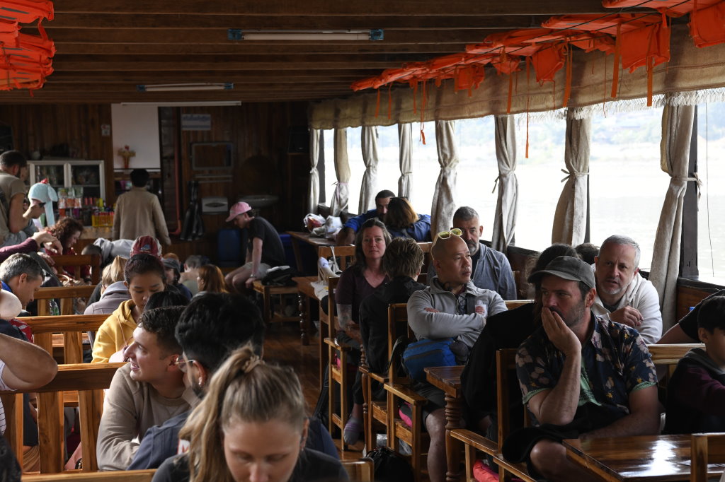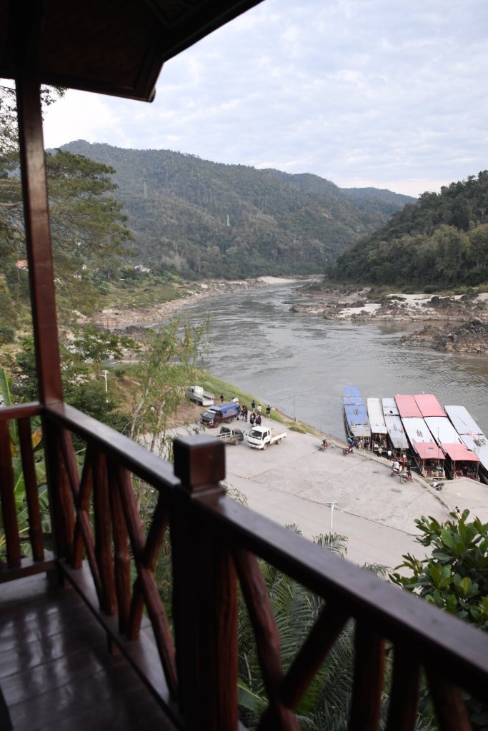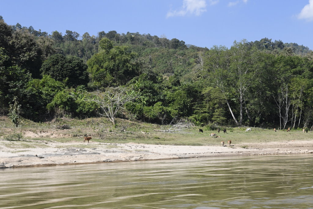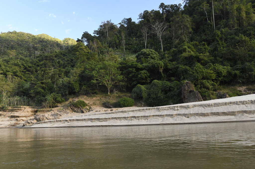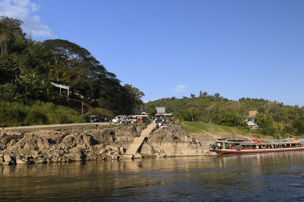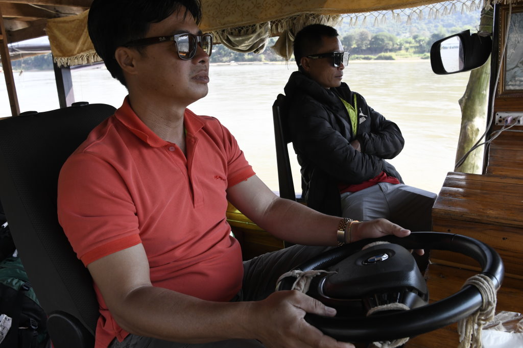 Der Mekong scheint sich zunehmend regelrecht durch die Berge zu fräsen. Die Fahrrinne wird schmäler. Auffällig wenige Boote kommen uns entgegen.