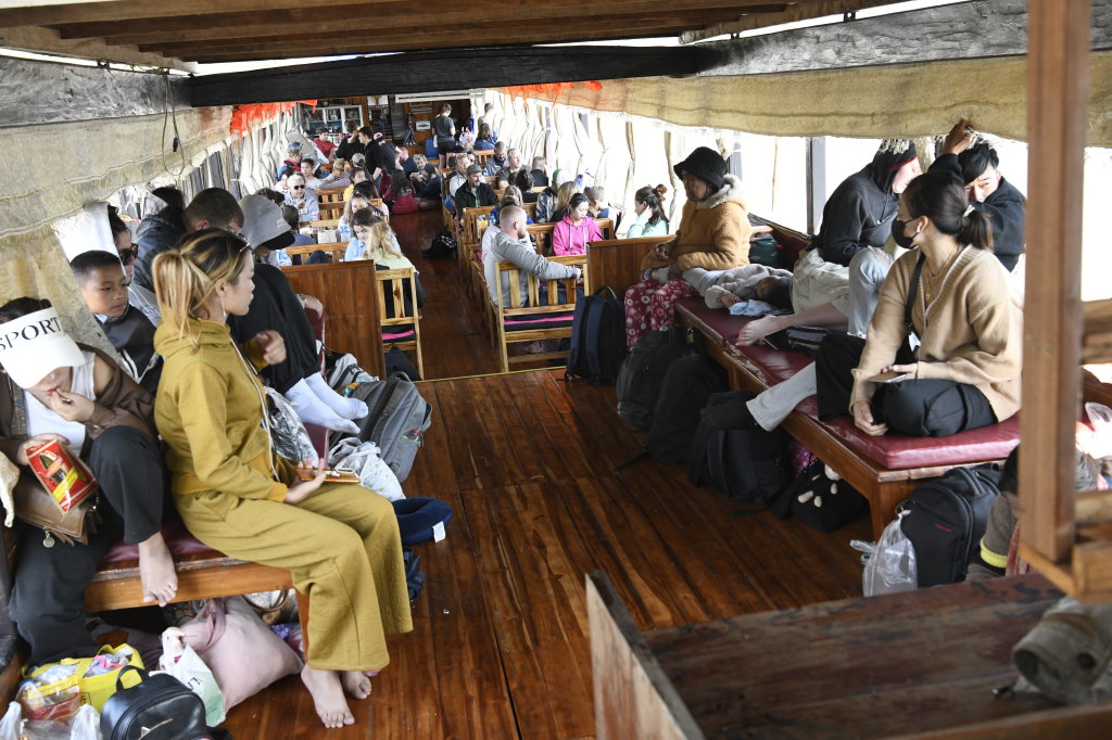 Nach einer Dreiviertelstunde geraten wir für kurze Zeit in ruhigere Gewässer. An Bord herrscht ein munteres Stimmengewirr aus englischen, portugiesischen, dänischen und deutschen Sprachfetzen. Alles scheint unverändert, vor allem jugendliche Backpacker, aber auch zwei Familien mit Kindern haben diese entspannte Art des Reisens wiederentdeckt. Die Millennium Kids haben das Ruder übernommen…