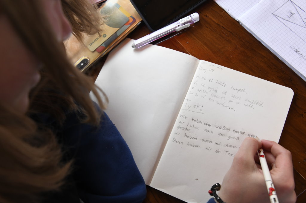 Schnell kommt man ins Gespräch, tauscht Reisepläne aus, gibt Tipps. Die Kinder der dänischen Familie gegenüber machen Hausaufgaben. Ganz altmodisch schreiben sie mit Bleistift in ihre Schulhefte. Anna Björk, Storm und Klint sollen Deutsch lernen, da komme ich gerade recht. Ich werde umgehend als Aushilfslehrer rekrutiert und darf mit der Ältesten ein paar Sätze korrigieren, die der jüngere Bruder über die letzten Stationen ihrer Reise geschrieben hat.