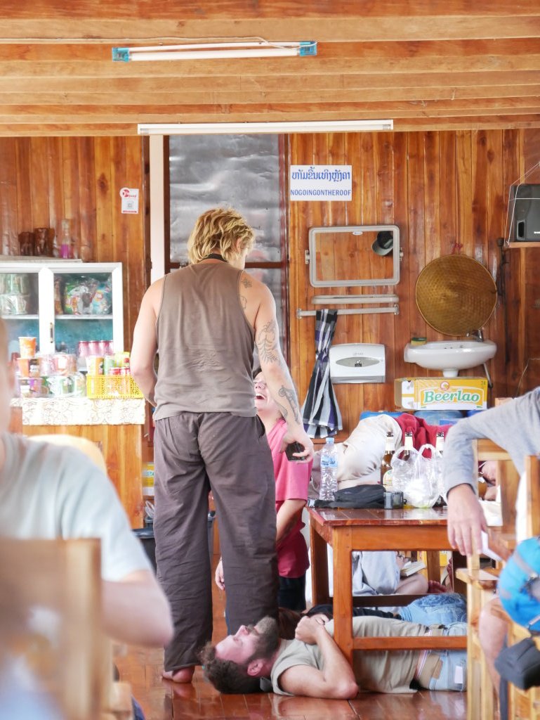 Allmählich nähern wir uns Pakbeng. Nur zweimal machen wir kurz halt, um eine Laotin an ihrem Dorf abzusetzen, ein anderes Mal, um die Biervorräte des Bord-Bistros aufzufüllen.