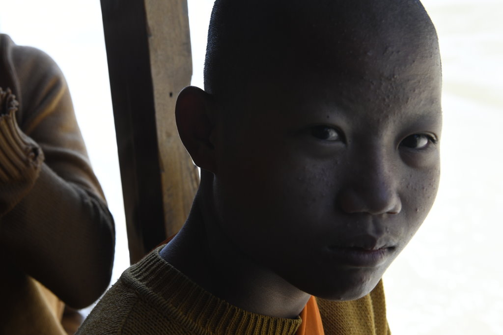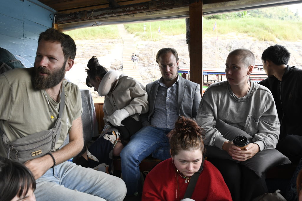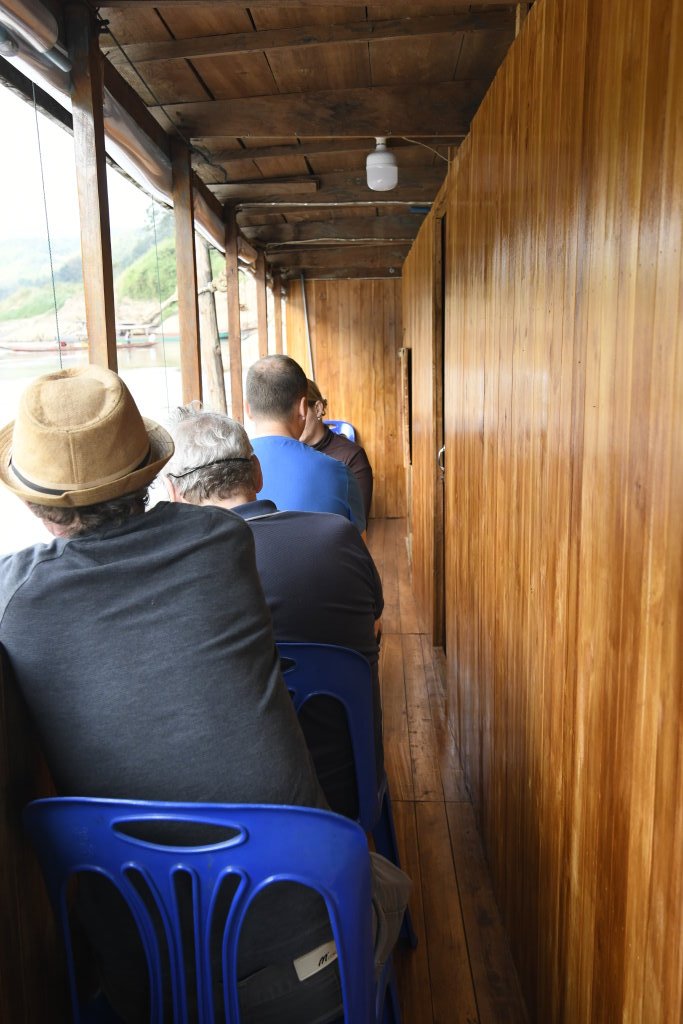 Beim dritten Stopp in Ban Haiteu kommen zwei Junge Mönche an Bord, vor dem Maschinenraum waren noch ein paar Stehplätze frei…