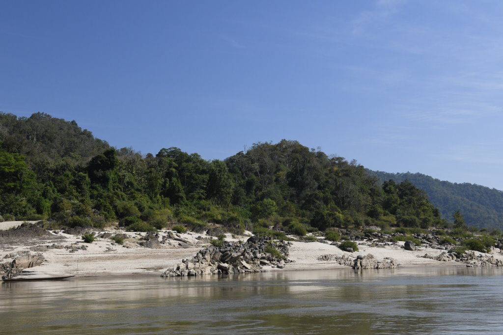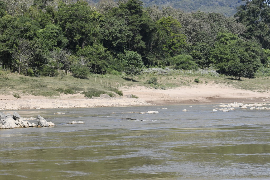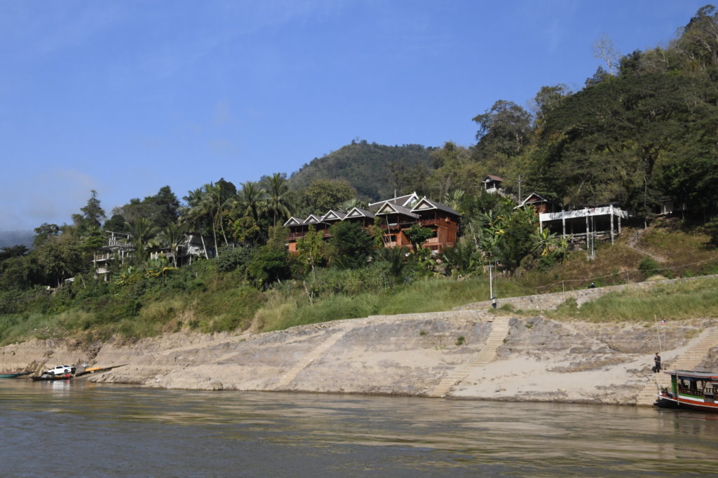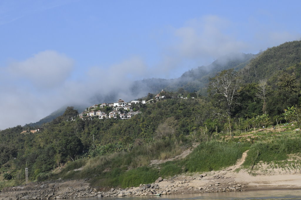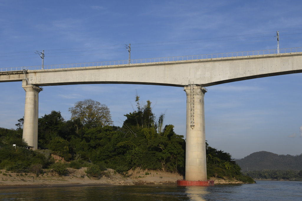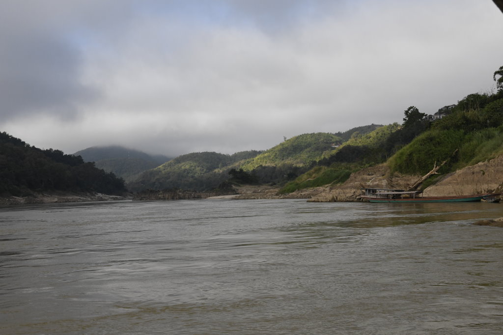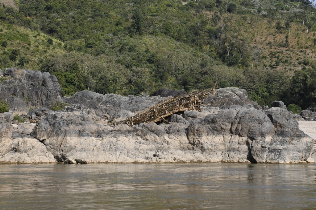 Der Mekong macht eine letzte große Schleife und wir nähern uns allmählich Luang Prabung. Zurück in die Gegenwart: Für den Laos-China Hochgeschwindigkeitszug wurden zwei neue Brücken gebaut. Damit scheint die chinesische Bautätigkeit jedoch noch nicht am Ende, wie eine weitere Großbaustelle am Ufer, mutmaßlich für einen Staudamm zeigt. Für zukünftige Slowboat-Fahrten sind das nicht unbedingt gute Aussichten, wie wir 2016 auf unserer Fahrt auf dem Nam Ou erleben durfte. Dort ist aufgrund der sieben von China gebauten Dämme eine solche Bootstour heute nicht mehr möglich..