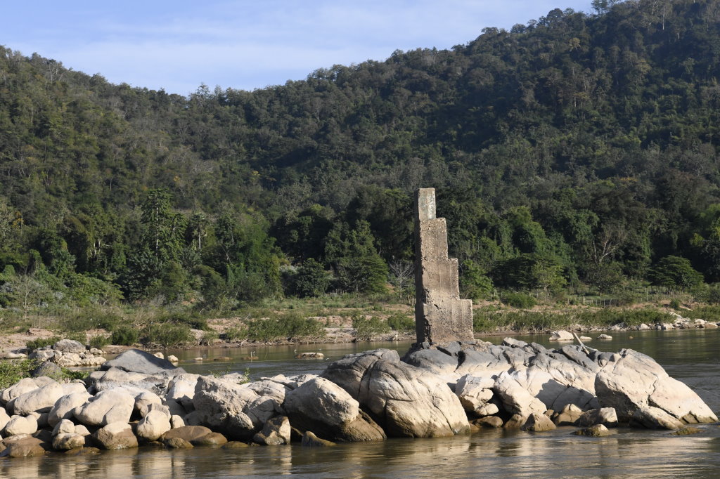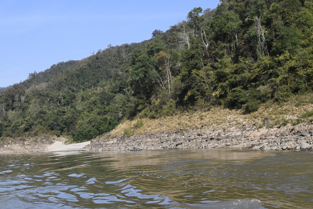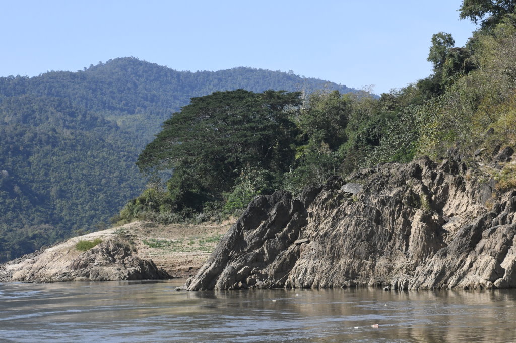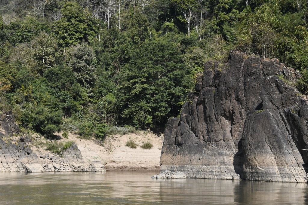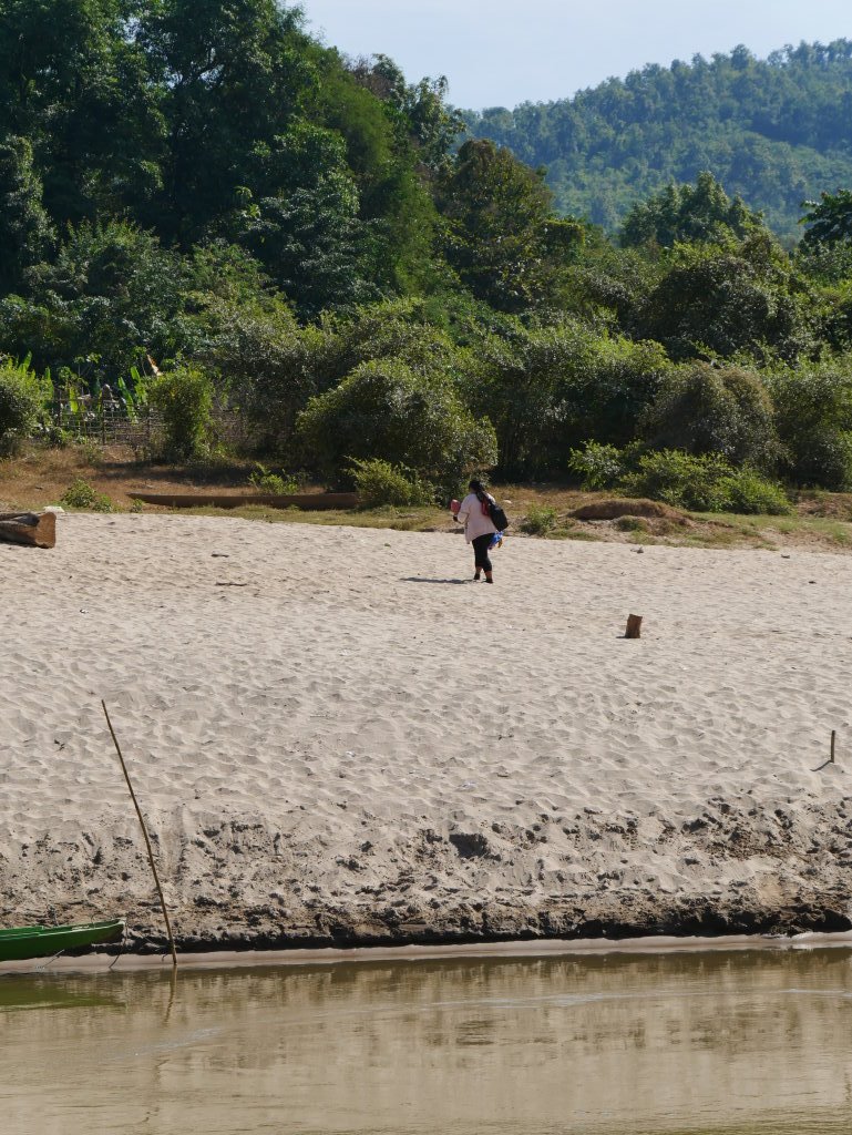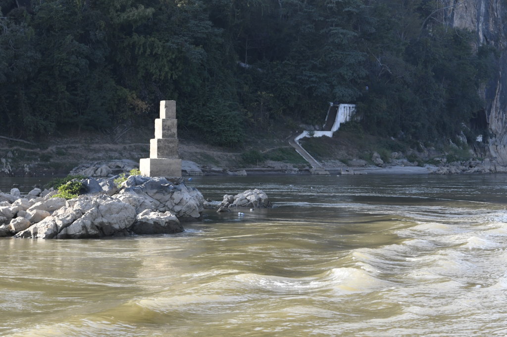 Der Mekong macht eine letzte große Schleife und wir nähern uns allmählich Luang Prabung. Zurück in die Gegenwart: Für den Laos-China Hochgeschwindigkeitszug wurden zwei neue Brücken gebaut. Damit scheint die chinesische Bautätigkeit jedoch noch nicht am Ende, wie eine weitere Großbaustelle am Ufer, mutmaßlich für einen Staudamm zeigt. Für zukünftige Slowboat-Fahrten sind das nicht unbedingt gute Aussichten, wie wir 2016 auf unserer Fahrt auf dem Nam Ou erleben durfte. Dort ist aufgrund der sieben von China gebauten Dämme eine solche Bootstour heute nicht mehr möglich..